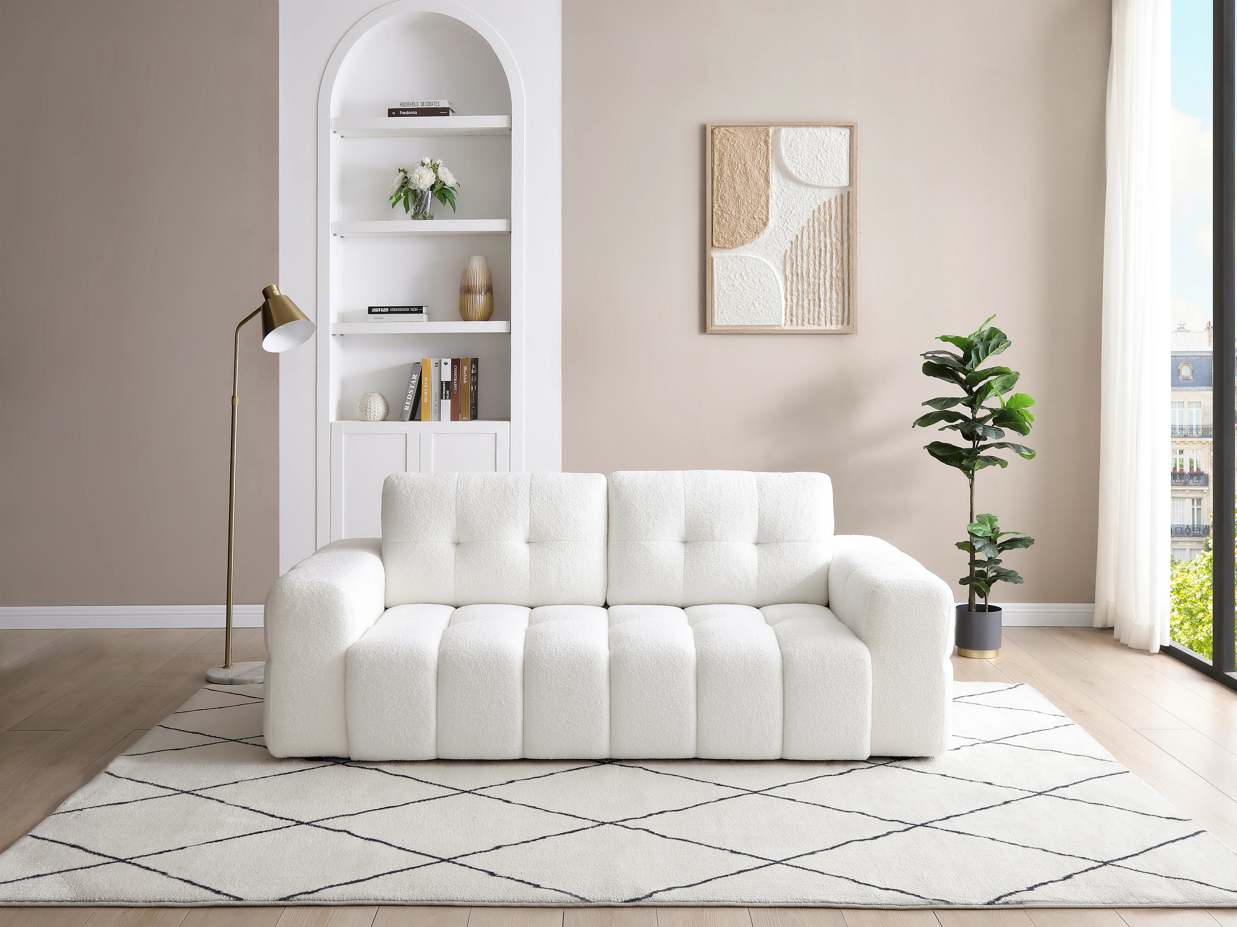 Canapé 2 places en tissu bouclette blanc SOPELANA