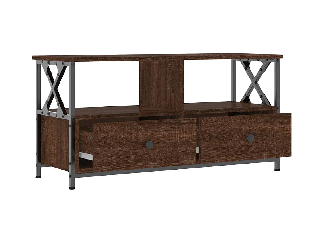 Sophie-Bernadette-Marie Meuble TV chêne fumé 102x33x45 cm bois d'ingénierie et fer