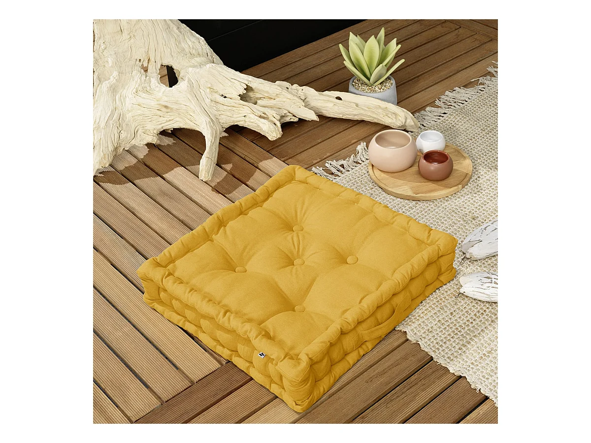 SOPHIE - Coussin de Sol 50x50cm Coton Coloris Safran