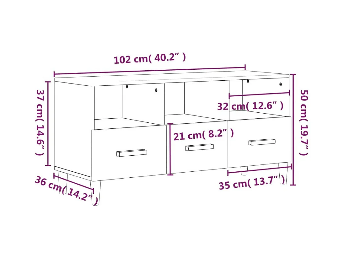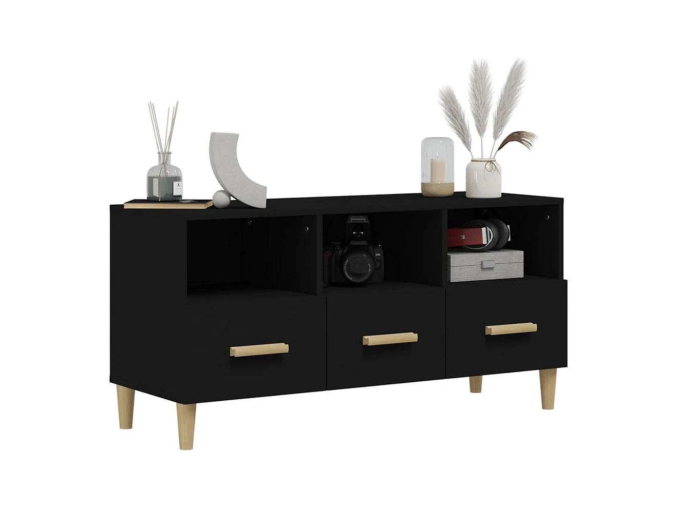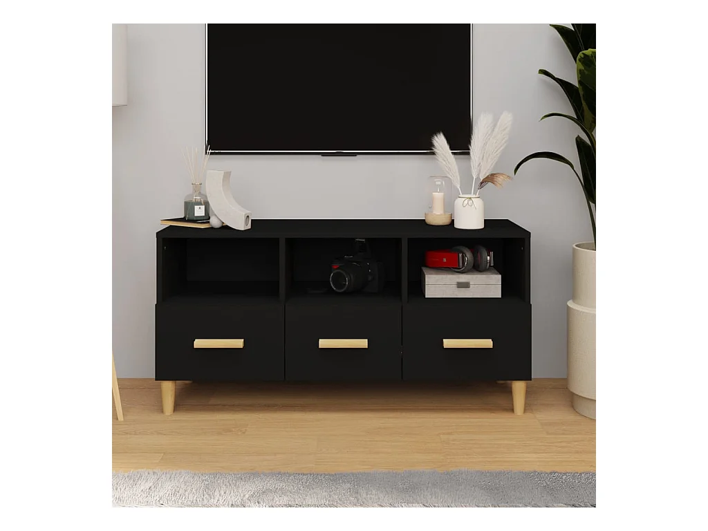 Qandrel Meuble TV noir 102x36x50 cm bois d'ingénierie