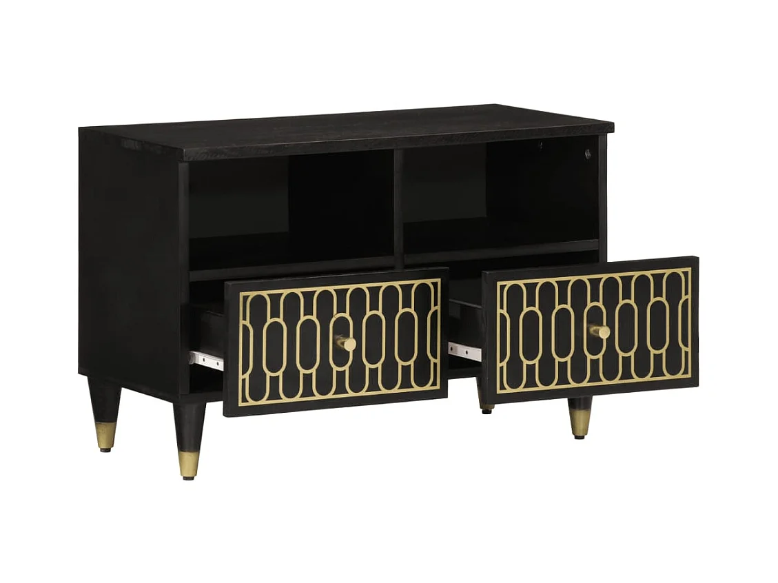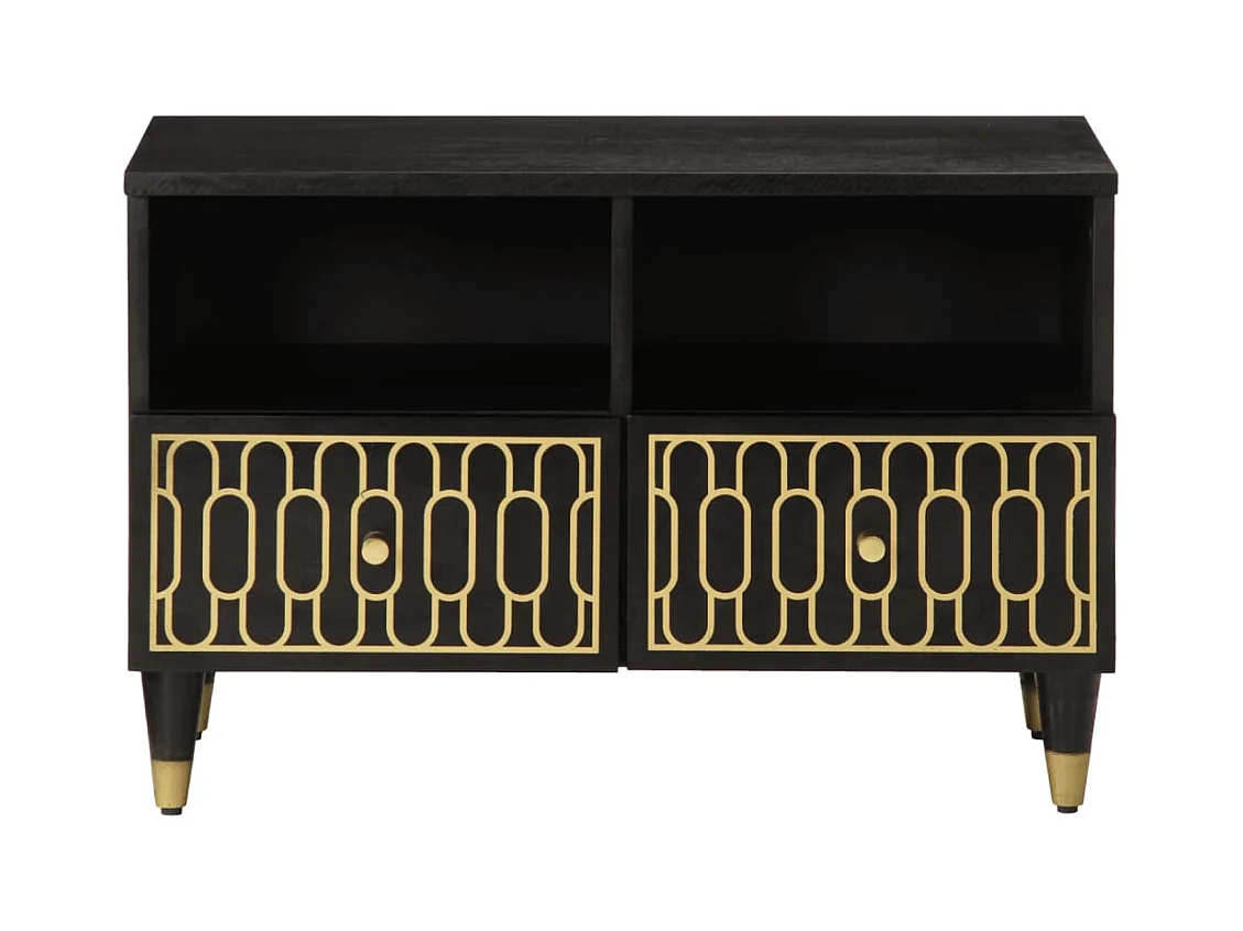 Serhat Meuble TV noir 80x33x46 cm bois massif de manguier
