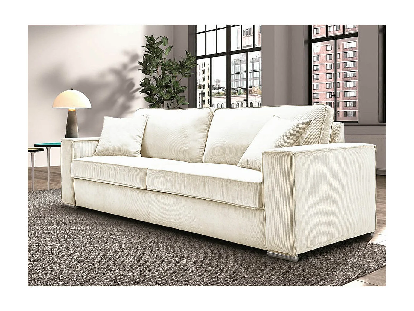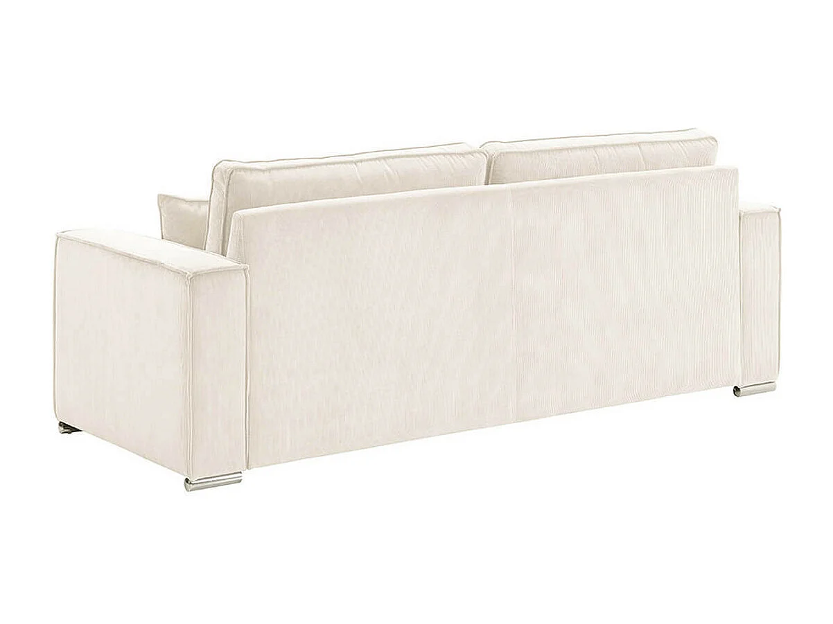 SORIAN - Canapé fixe 3 Places Velours Côtelé avec 2 Coussins Blanc