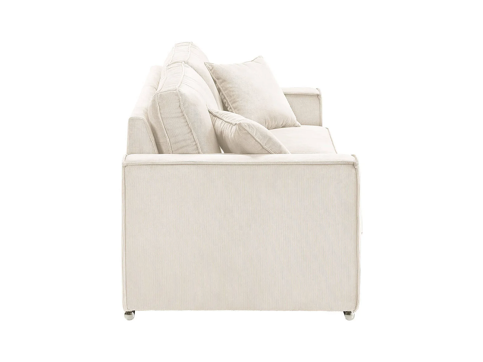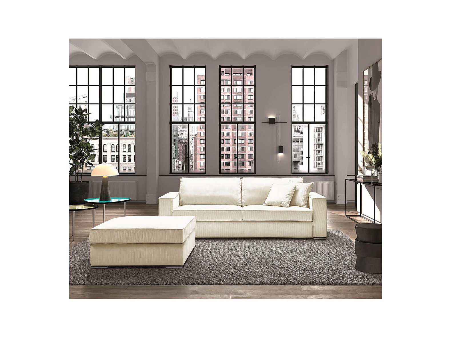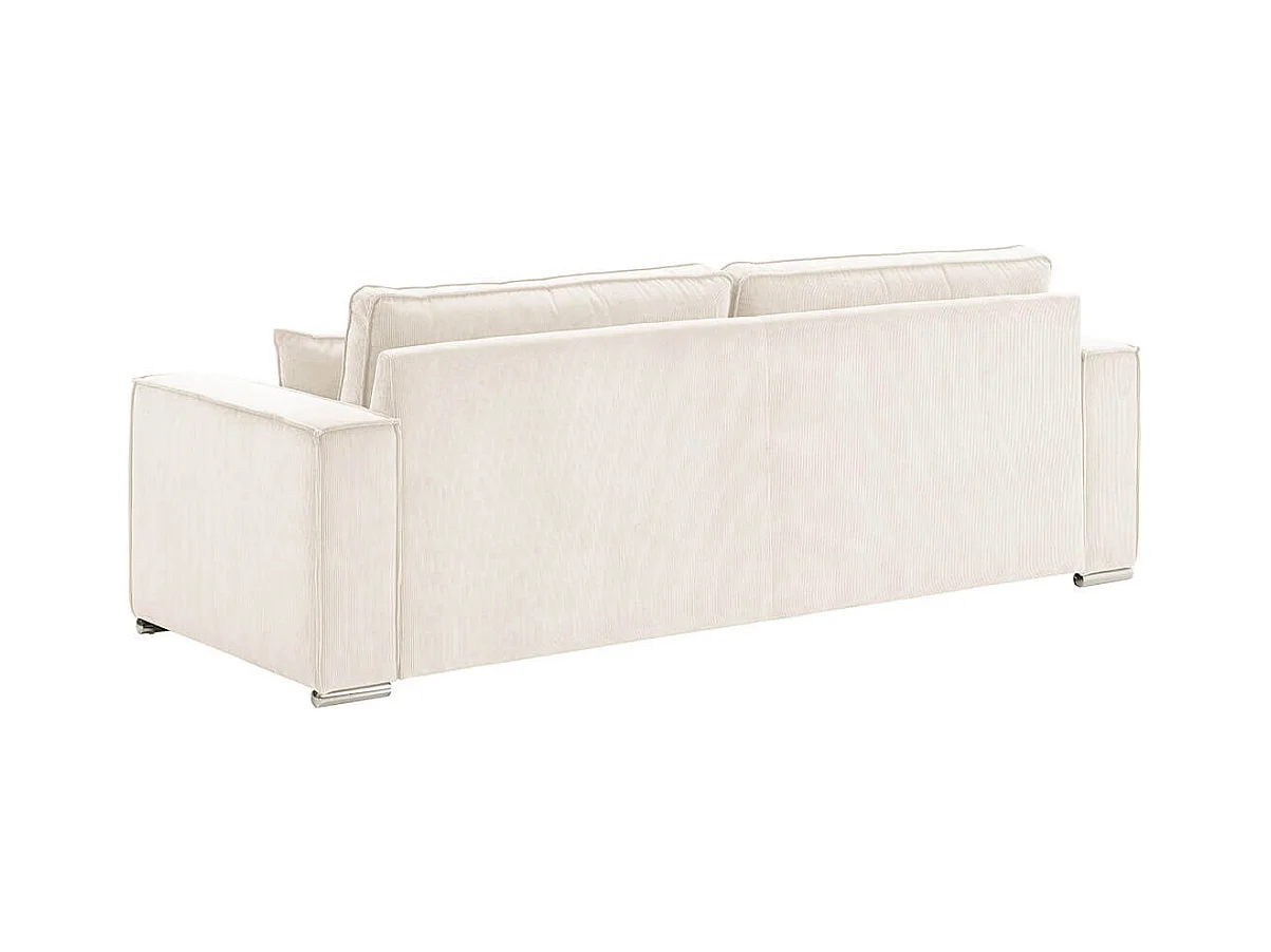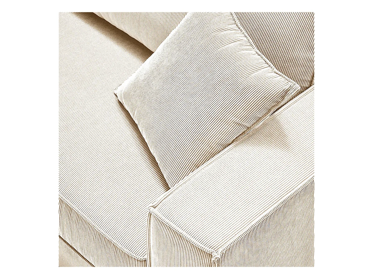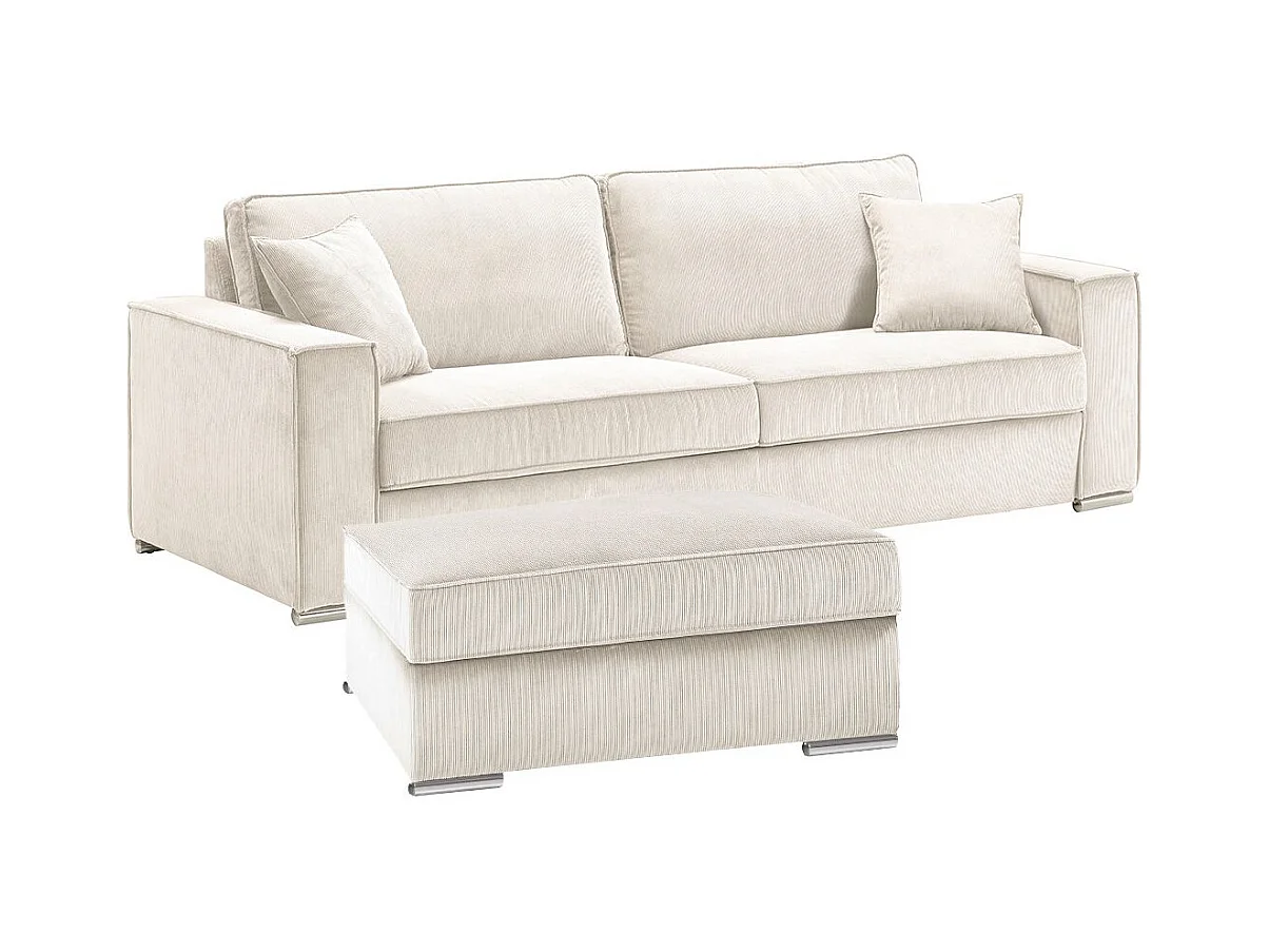 SORIAN - Canapé fixe 4 Places Velours Côtelé + Pouf Blanc