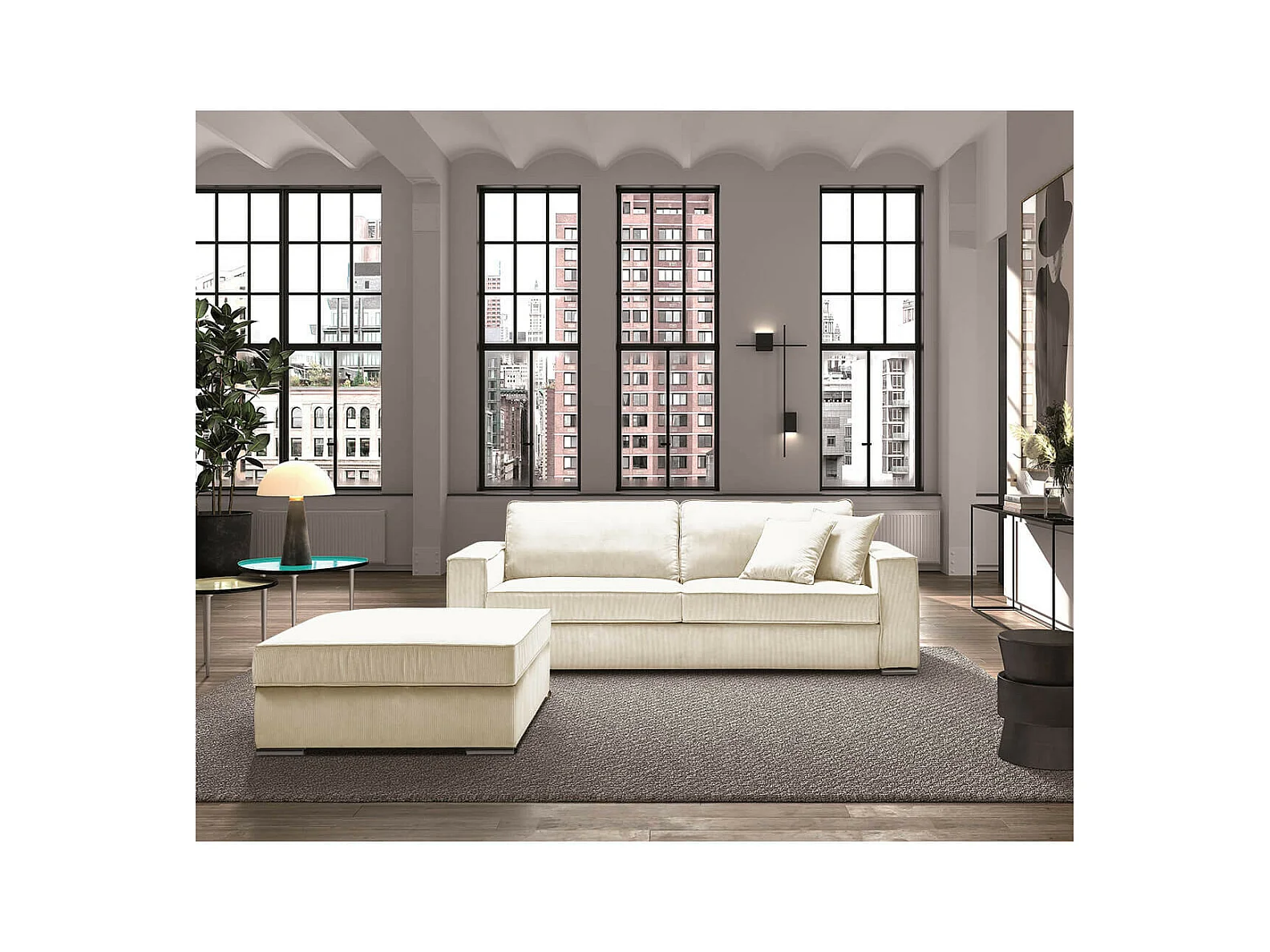 SORIAN - Pouf Repose Pieds Velours Côtelé Blanc