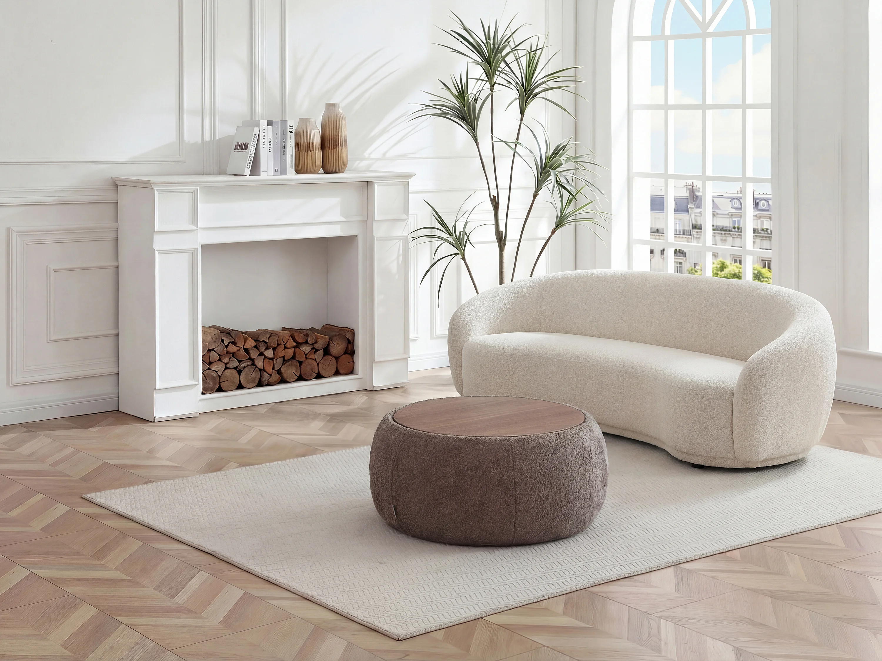Table basse avec coffre de rangement en tissu bouclette et MDF - Taupe - SORIELI