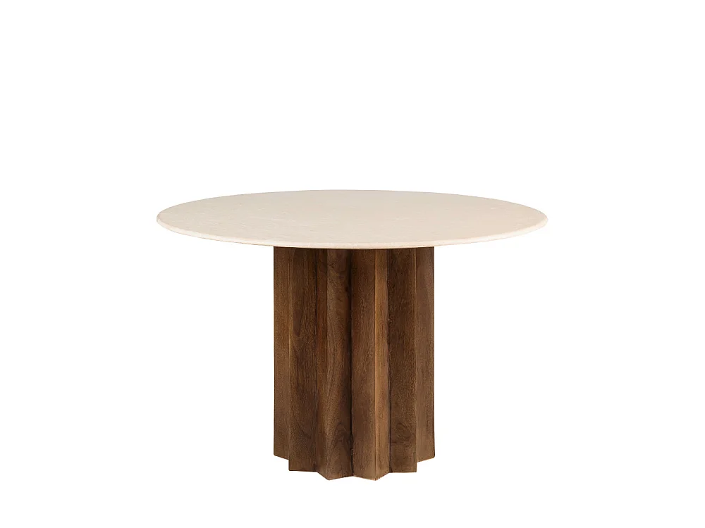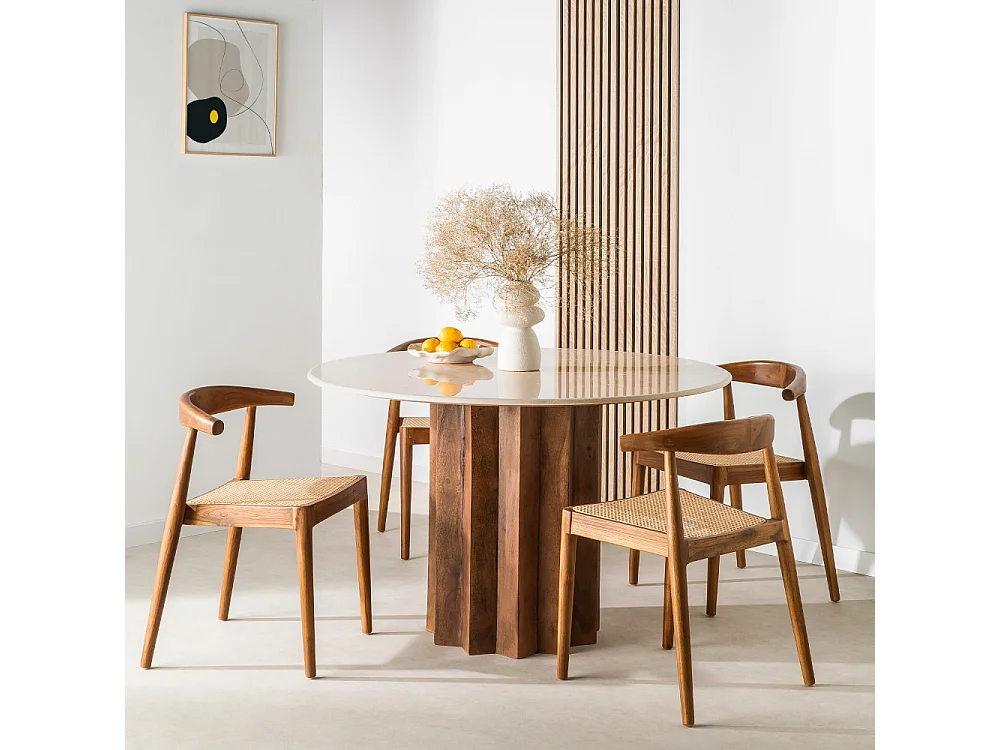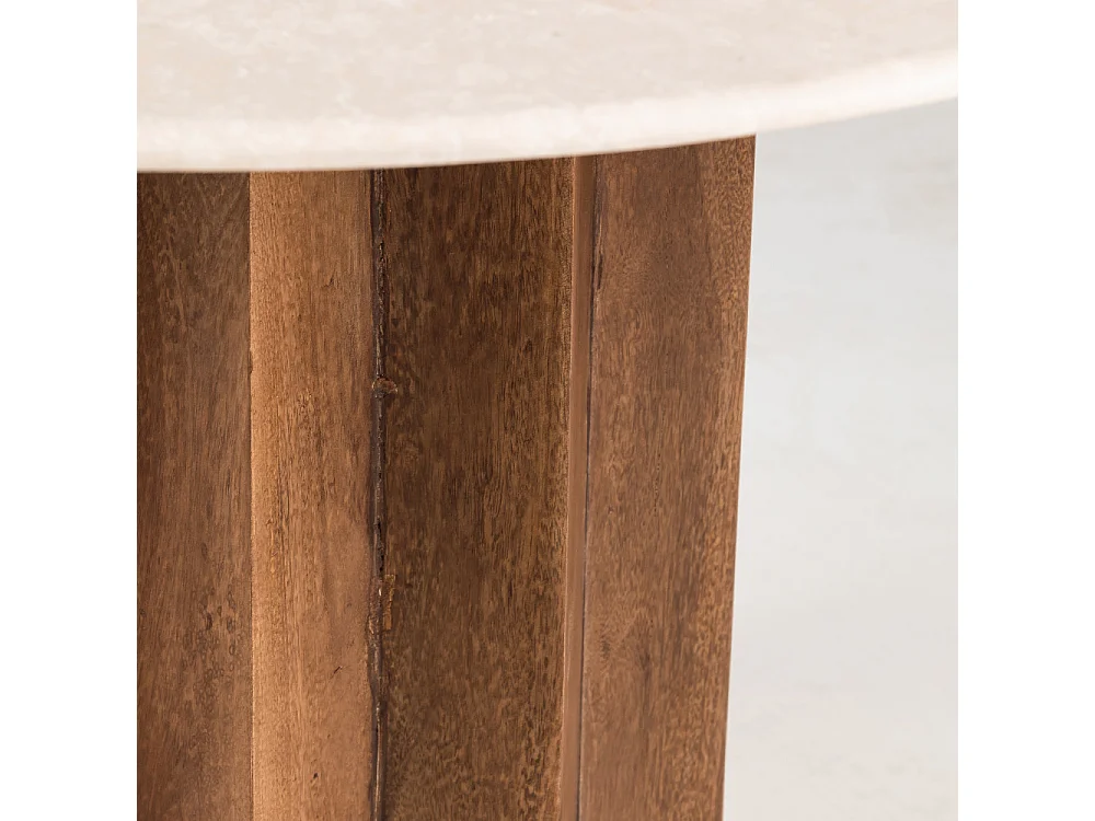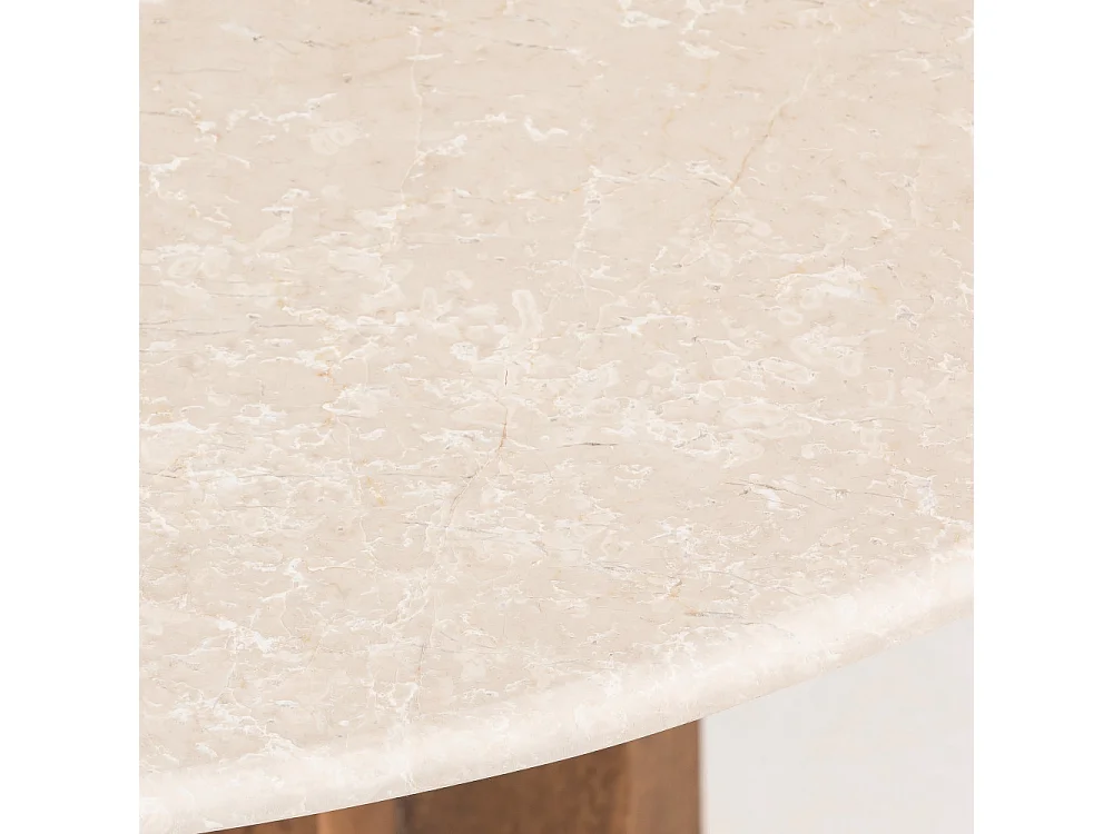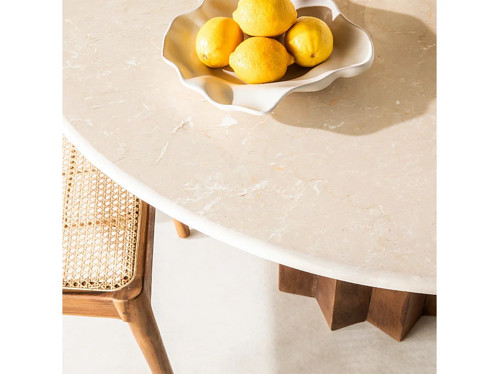 Sorong - Table à manger 4 personnes ronde en marbre et bois massif - Ivoire