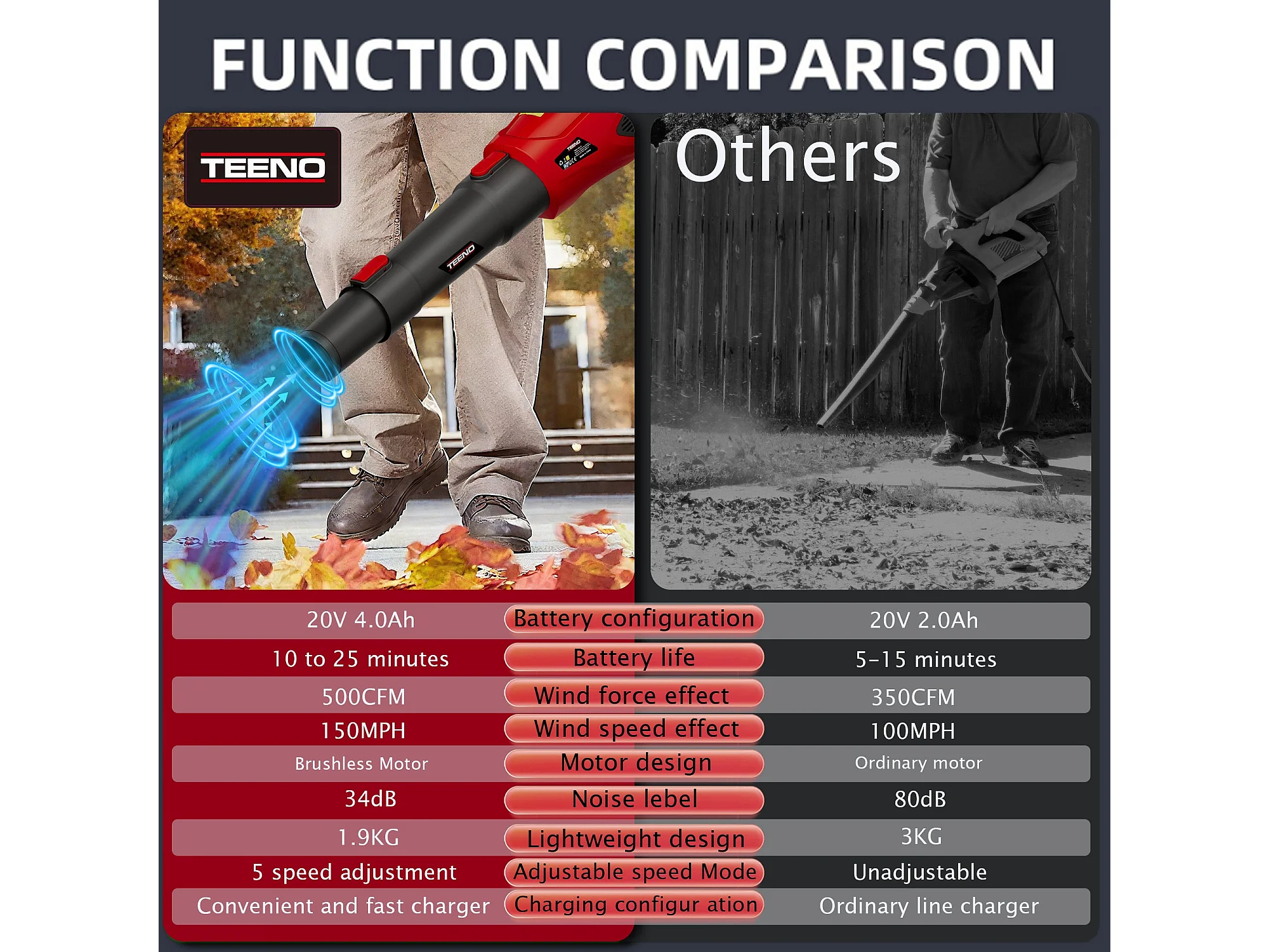 Souffleur de Feuilles sans Fil 20 V, souffleur à Feuilles avec Batterie 4,0 Ah, 5 Modes de Vitesse pour l'entretien de la pelouse, 4500 W, et Le dépoussiérage