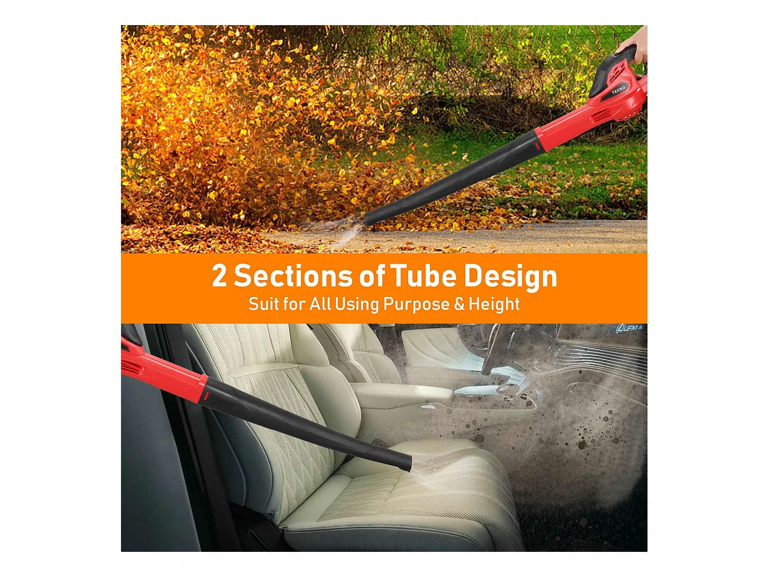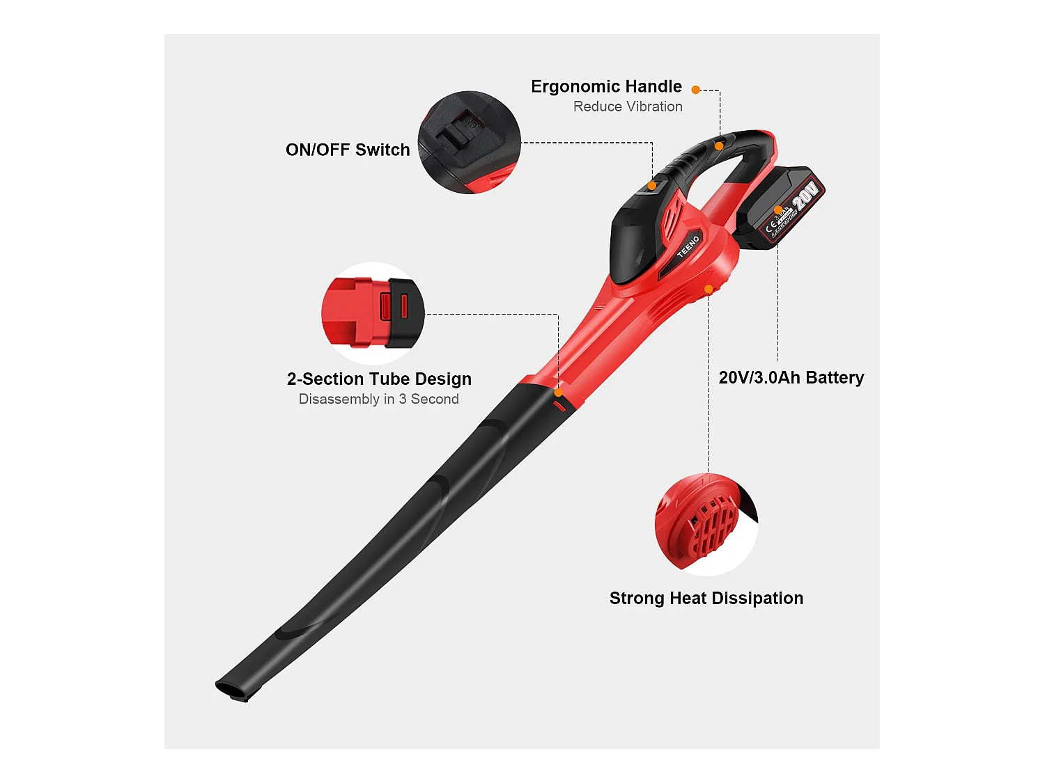 Souffleur de Feuilles sans Fil 20V 3.0Ah 1x Batterie,1xChargeur, Rouge,Compatible avec les batteries Makita