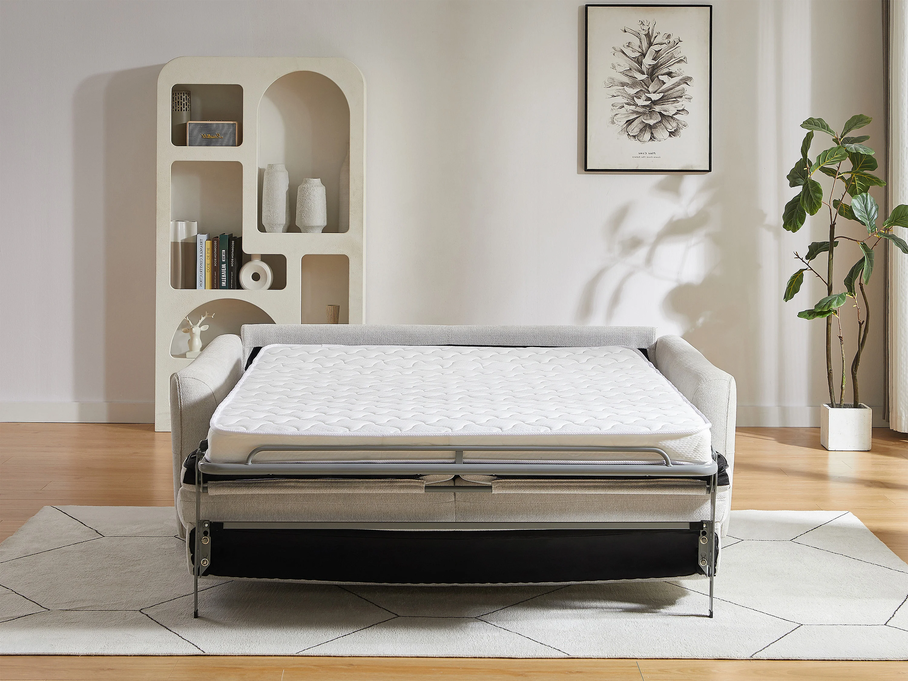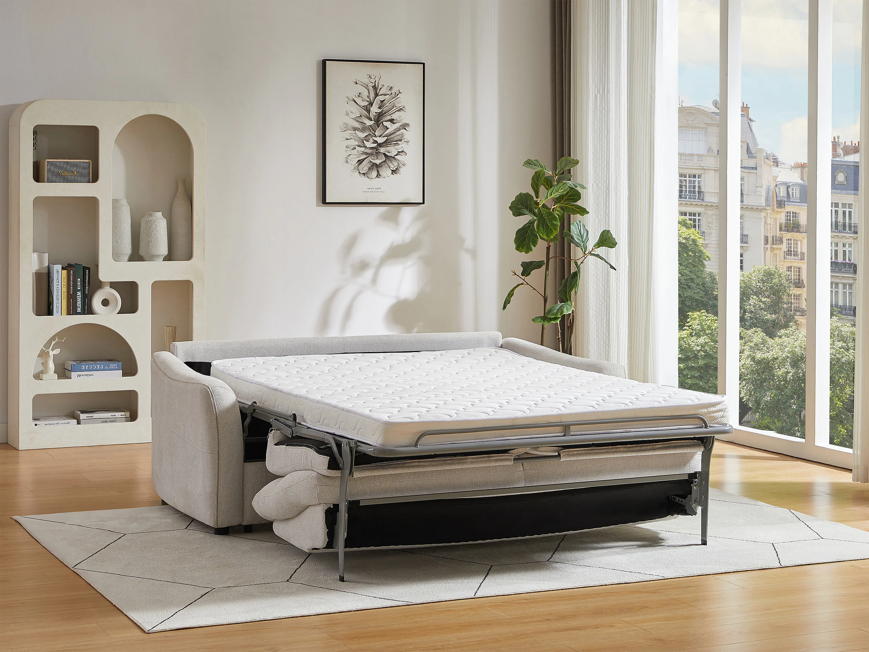 Canapé convertible express 3 places en tissu beige SOVANIA