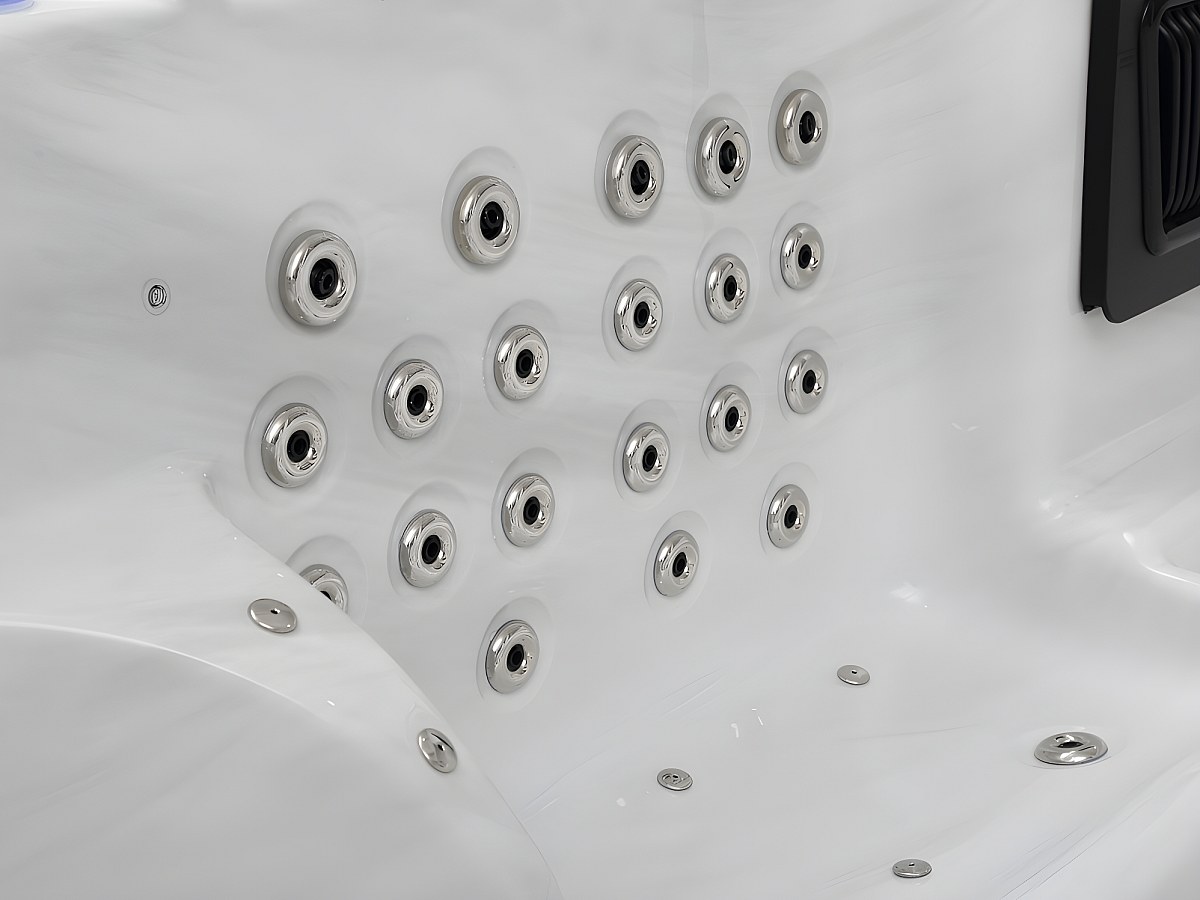 Relaxation par les jets : les airjets sont à l’origine du bouillonnement en surface générant un massage diffus procurant bien-être et relaxation, tandis que les hydrojets sont les garants des massages en profondeur. Alimentés par les pompes, les buses hydrojets propulsent un mélange d’air et d’eau permettant le massage de certaines parties du corps. Ces jets sont les rois pour tonifier le dos, la taille, délasser la nuque, masser les cuisses et détendre les pieds.