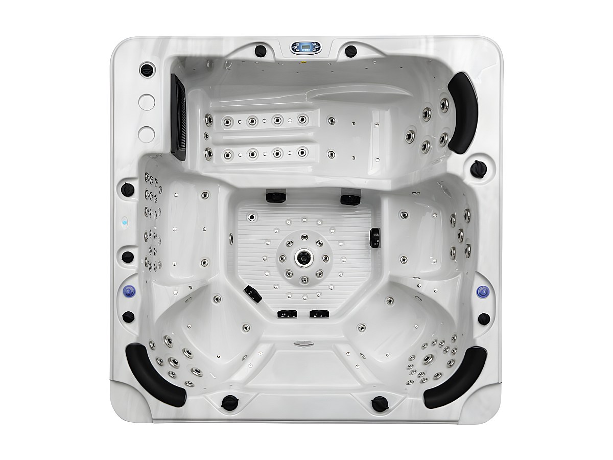 - Panneau de contrôle BALBOA ergonomique et digital et télécommande incluse. La puissance des jets de massage, la durée, la température et les programmes de séance sont contrôlés par le panneau de commande digital.