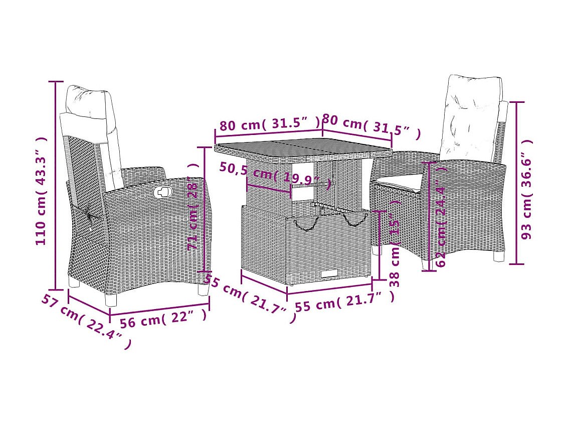 Spello Ensemble à manger de jardin 3 pcs coussins gris résine tressée