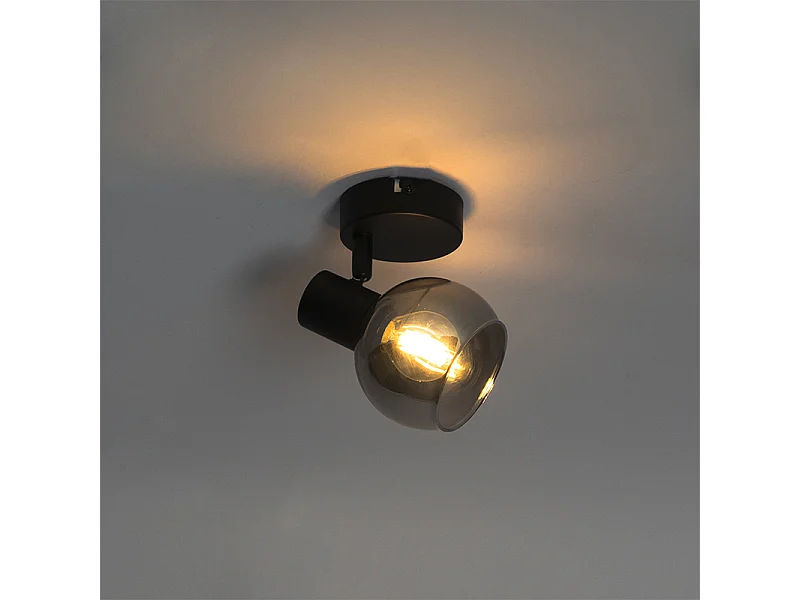 Plafonnier Art Déco noir avec verre fumé - Busa