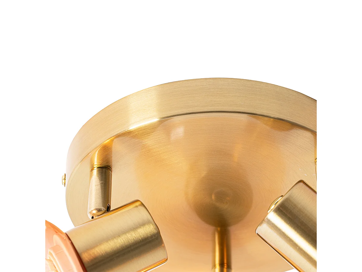 Spot de plafond Art déco doré avec verre rose 3 lumières - Vidro