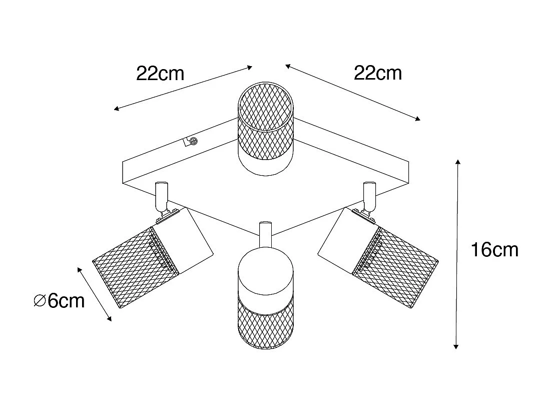 Spot de plafond industriel noir 4 lumières orientables - Jim