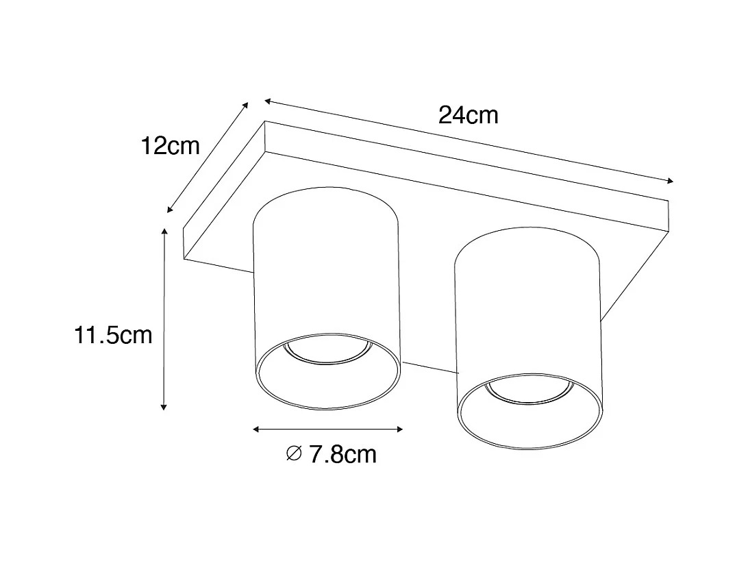 Spot de plafond moderne noir et doré 2 lumières - Tubo