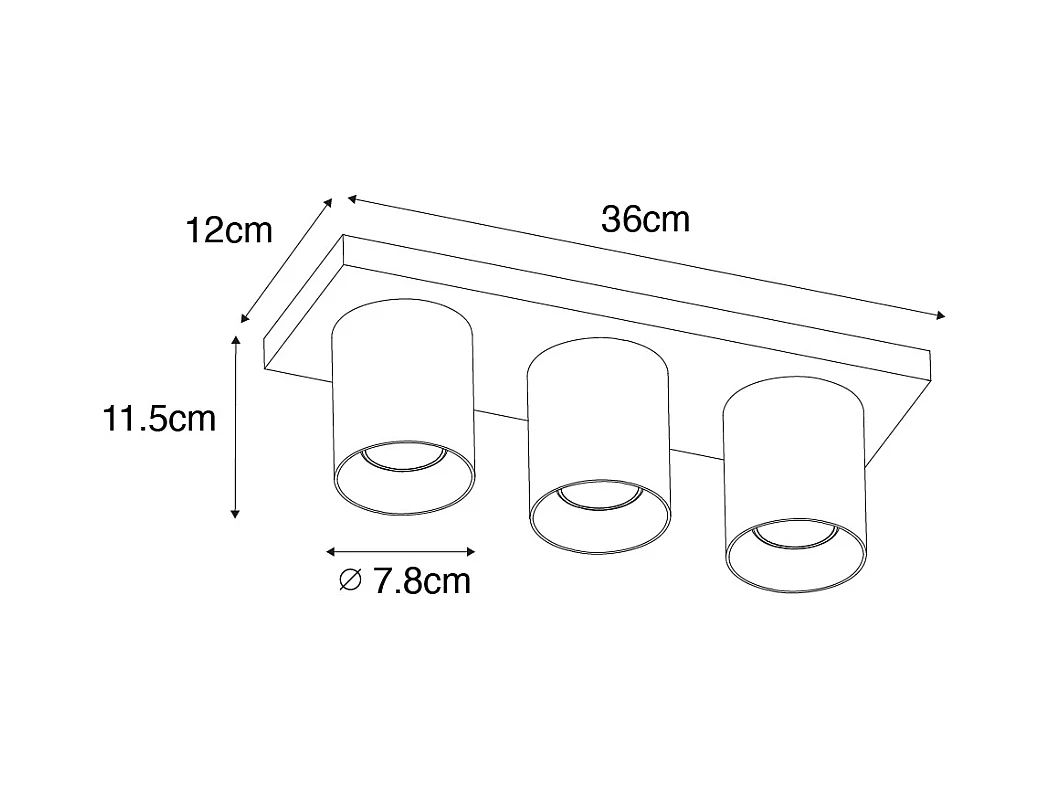 Spot de plafond moderne noir et doré 3 lumières - Tubo