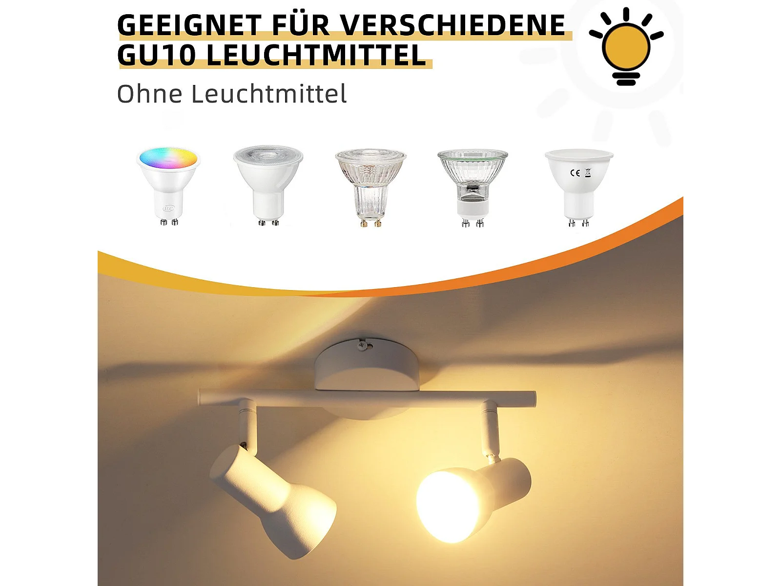 Spot de plafond NETTLIFE 2 flammes design moderne blanc spot GU10 métal spots de plafond orientables à 350°