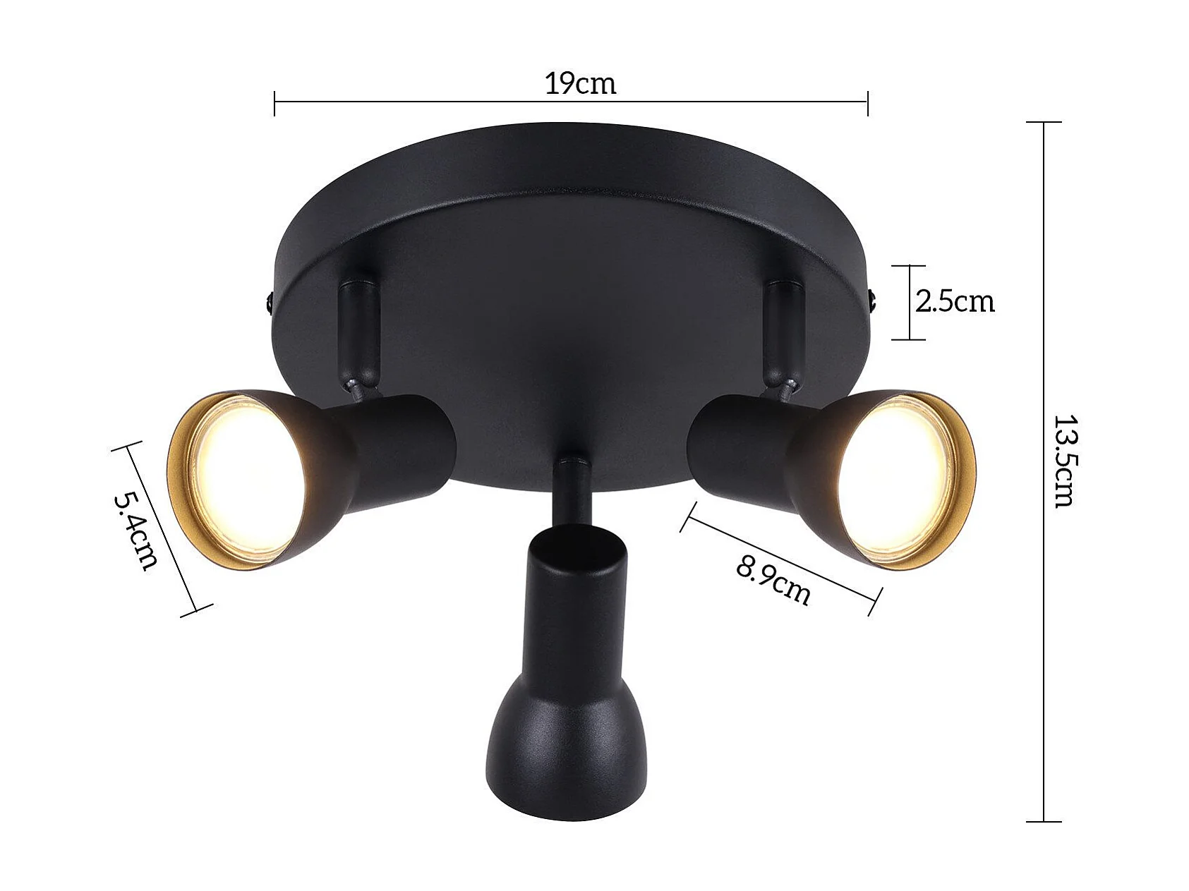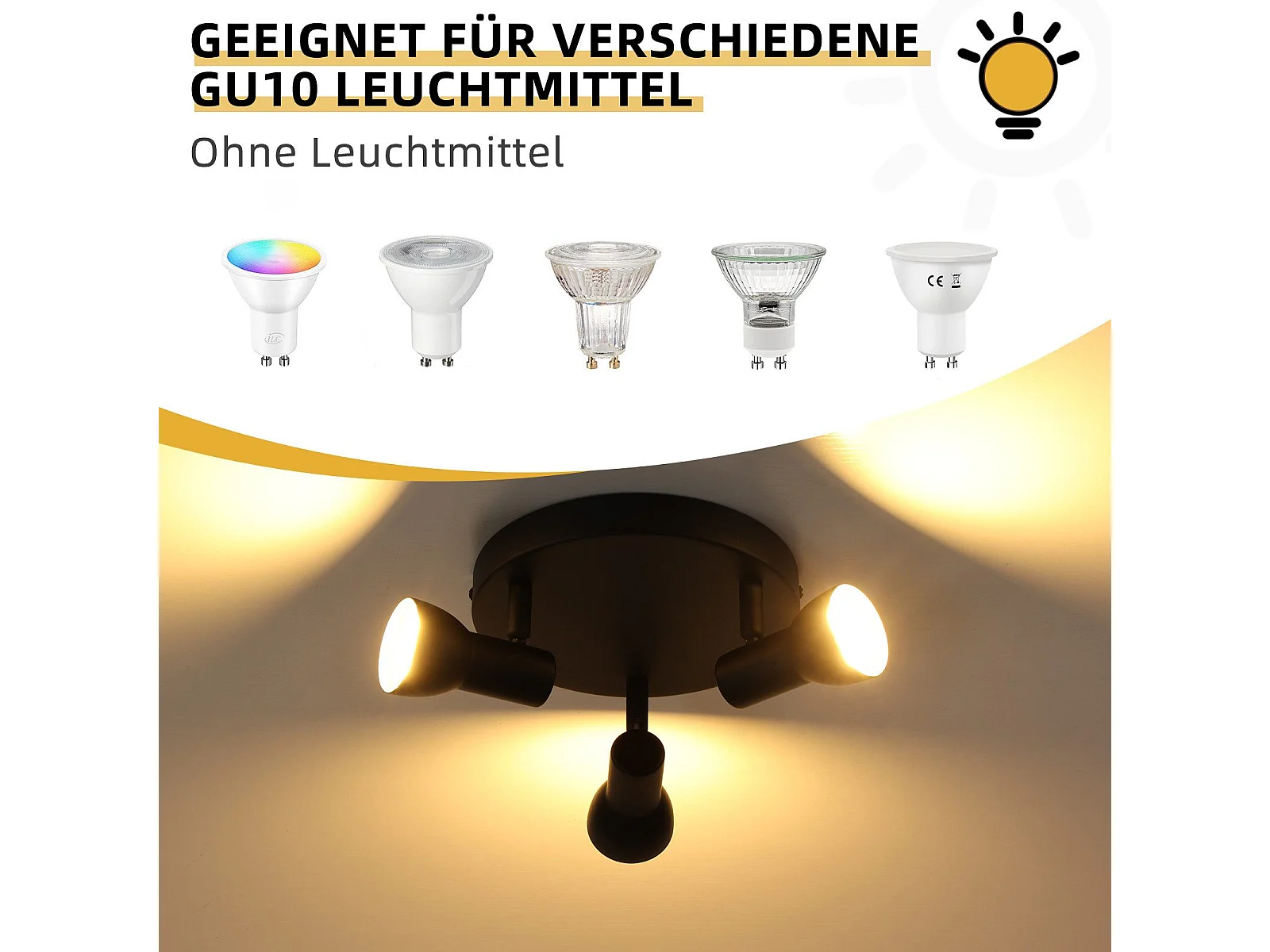 Spot de plafond NETTLIFE 3 flammes, plafonnier noir, design moderne, spots de plafond ronds en métal, culot GU10