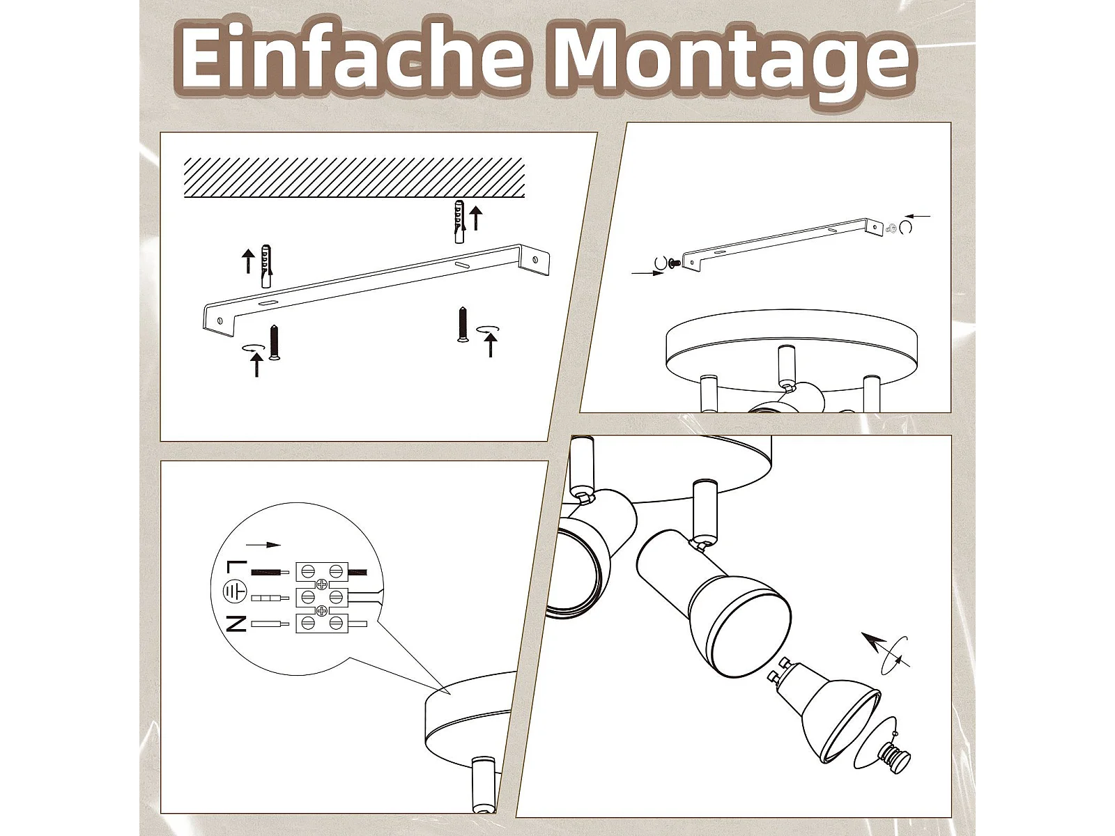 Spot de plafond NETTLIFE 3 flammes - Spot de plafond rond moderne en verre orientable à 350° pour salon