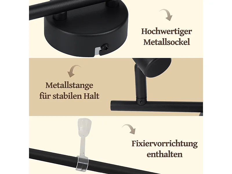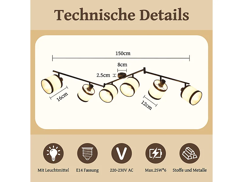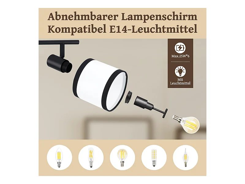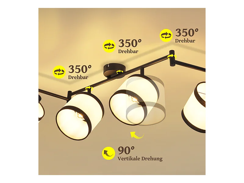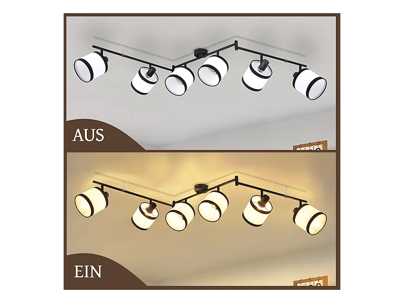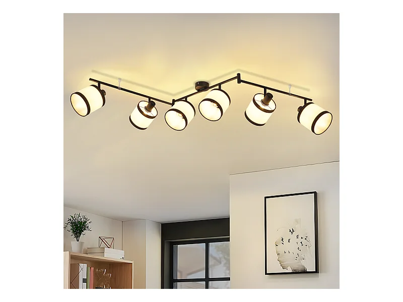 Spot de plafond NETTLIFE 6 flammes noir - Plafonnier E14 rétro en tissu, pivotant à 350°, pour salon, chambre, cuisine, bureau (sans ampoule)