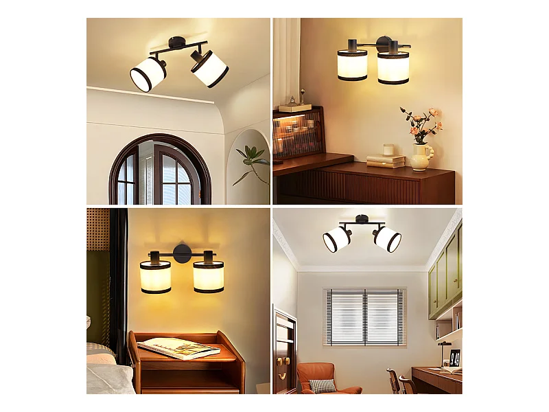 Spot de plafond NETTLIFE noir, lampe de couloir, 2 flammes - Spots de plafond LED E14, plafonnier en tissu, orientable, vintage (sans ampoule)