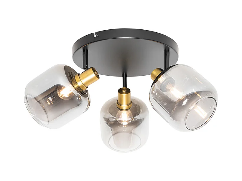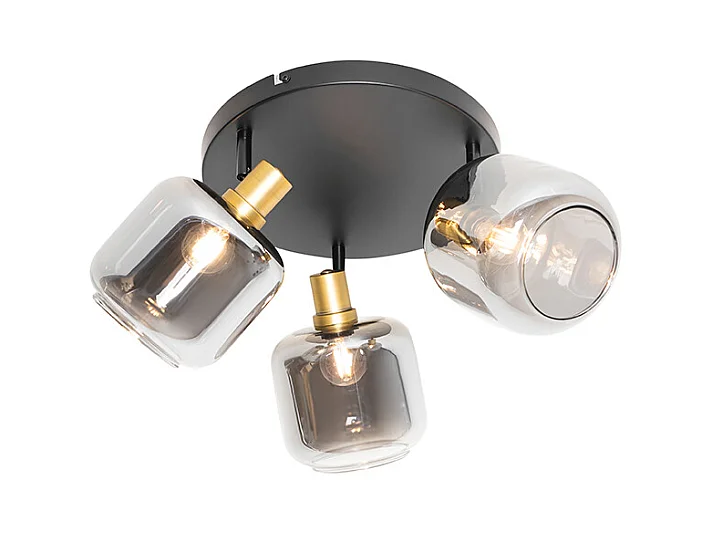 Spot de plafond noir avec or avec verre fumé 3 lumières - Zuzanna