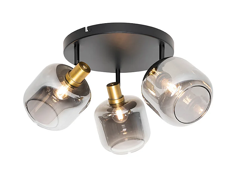 Spot de plafond noir avec verre fumé rond 3 lumières - Zuzanna