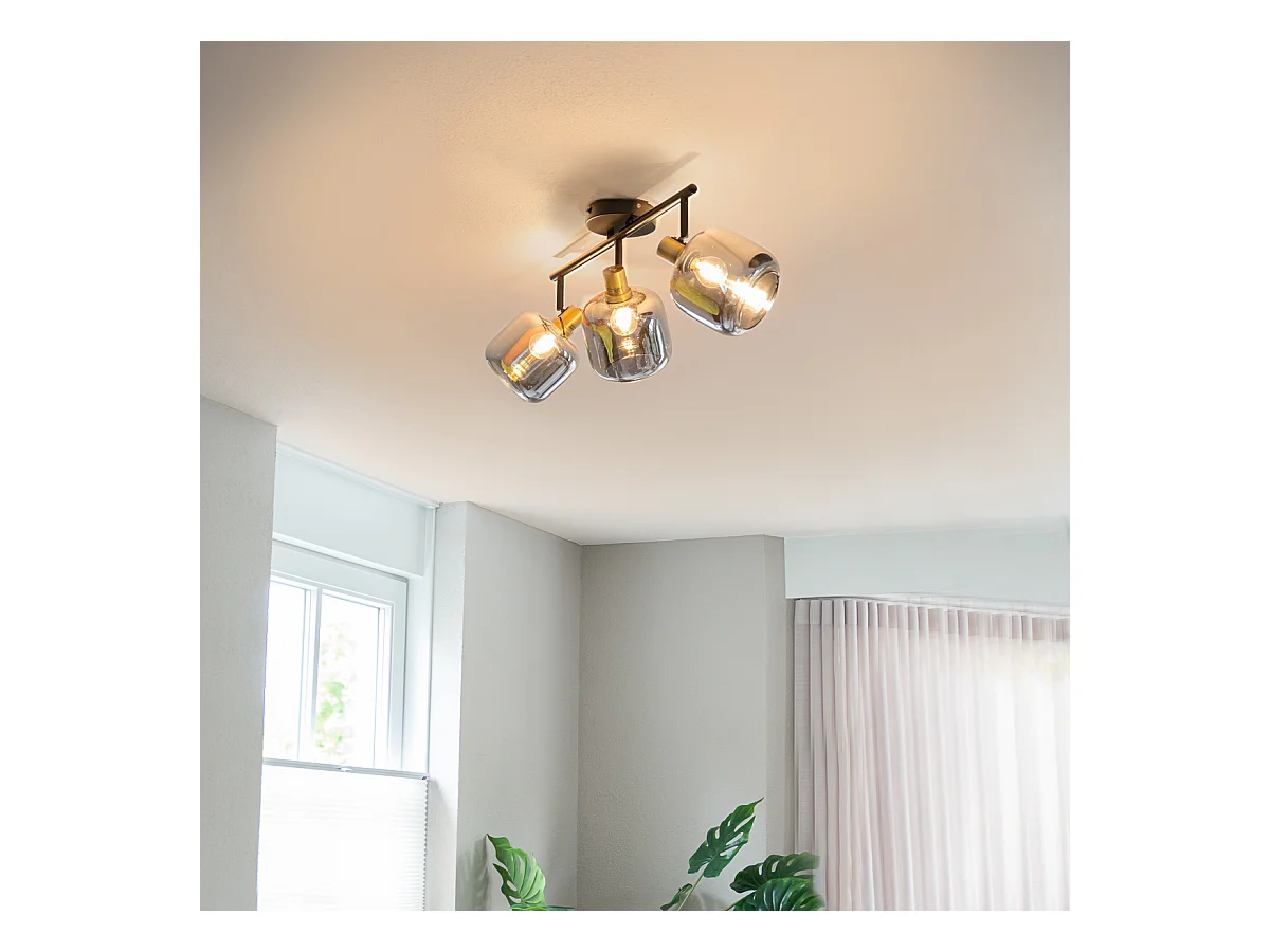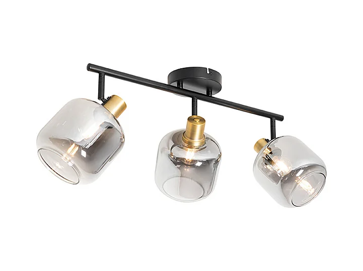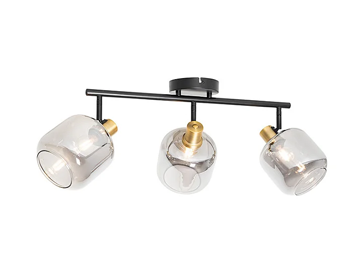 Spot de plafond noir avec or avec verre fumé 3 lumières - Zuzanna