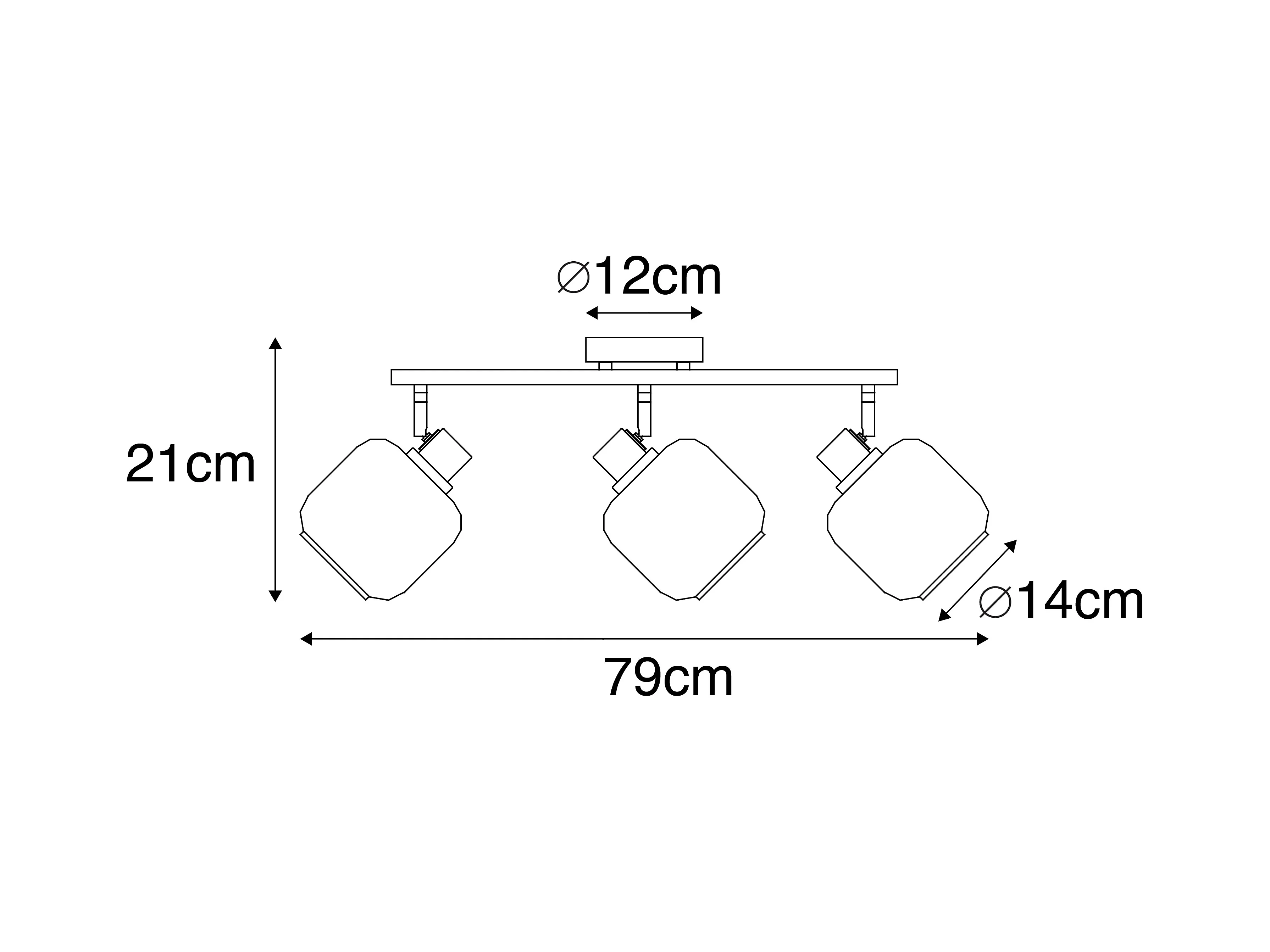Spot de plafond noir avec verre fumé allongé 3 lumières - Zuzanna