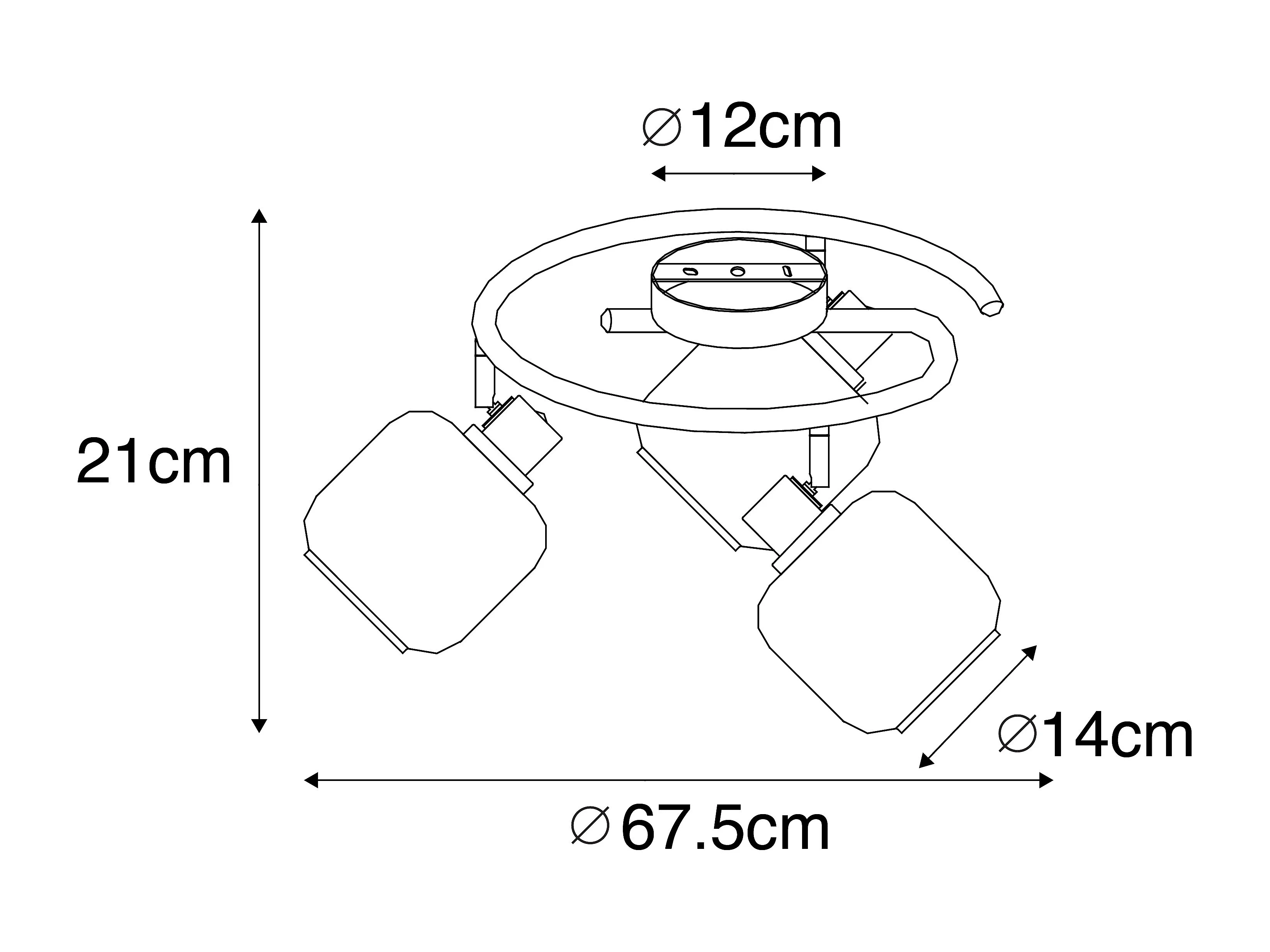 Spot de plafond noir avec verre fumé rond 3 lumières - Zuzanna