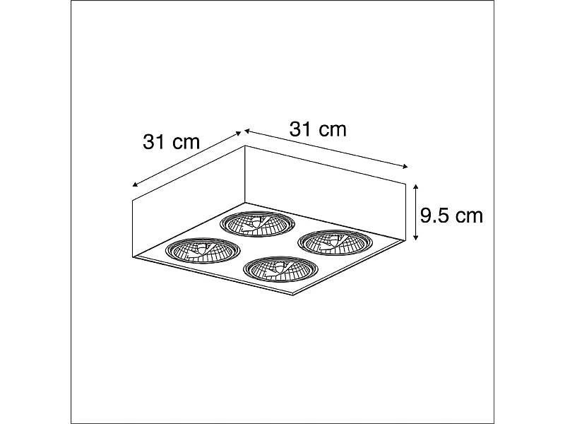 Spot design noir carré 4 lumières - Kaya