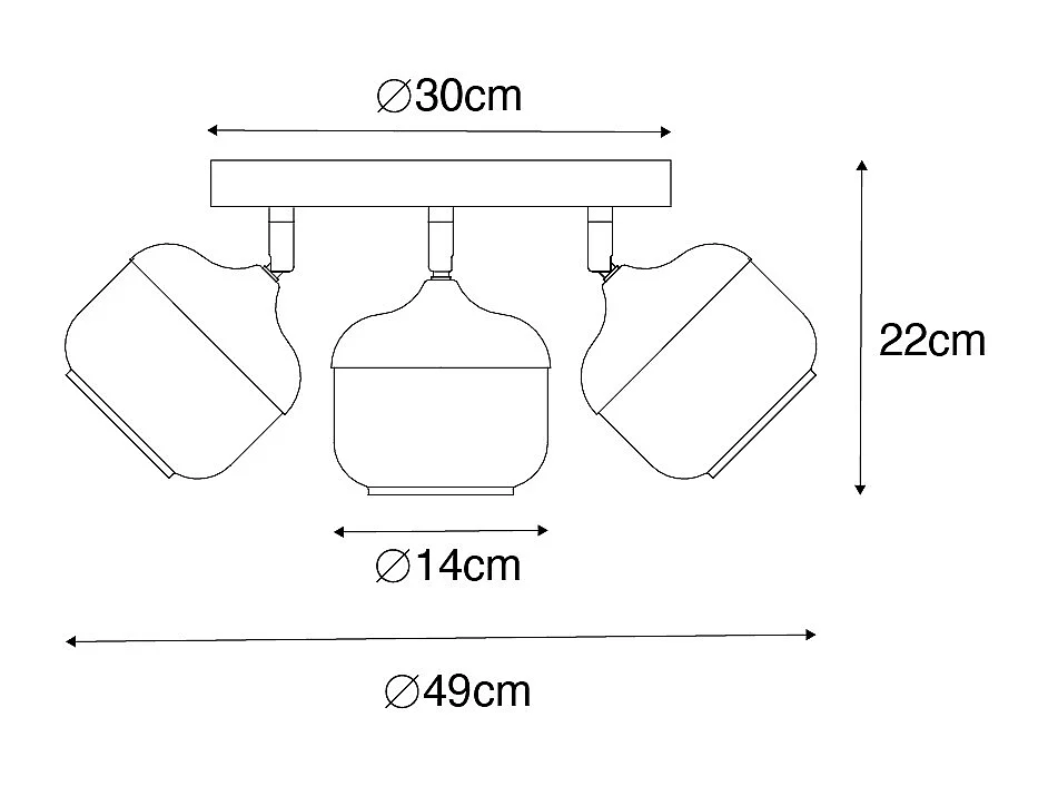 Spot de plafond doré avec verre 3 lumières rond réglable - Laura