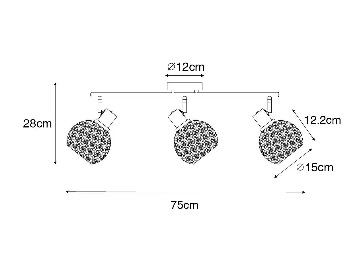 Spot design noir avec verre fumé 3 lumières rond - Chico