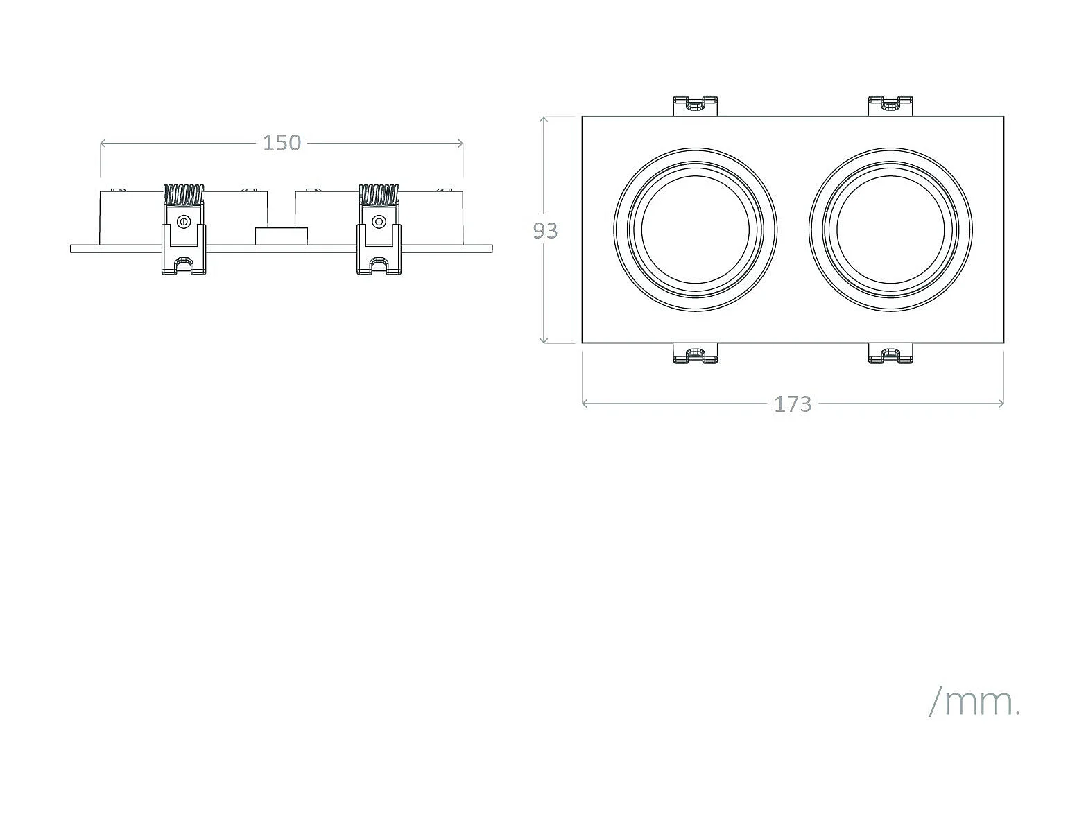 Spot LED Downlight Carré Inclinable GU10 6W Coupe 75x150mm PC No Flicker 4000K Blanc Blanc neutre