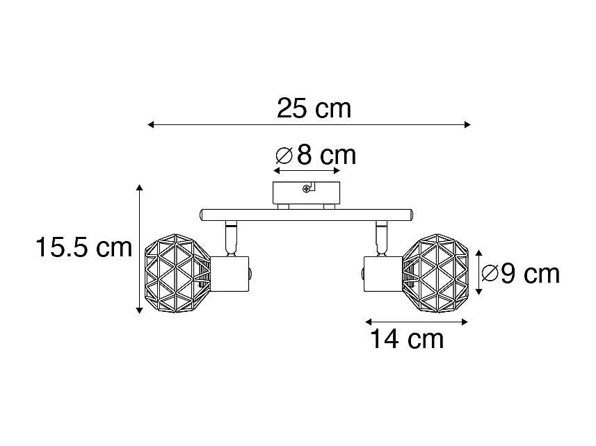 Spot moderne noir avec cuivre 2 lumières - Mesh