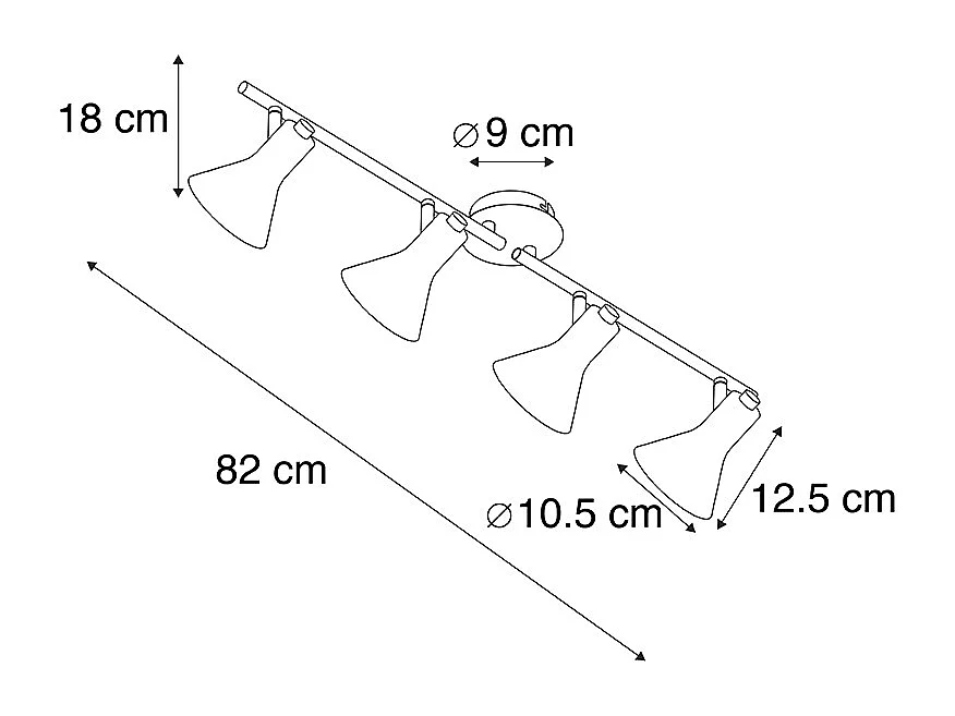 Spot de plafond moderne noir 86 cm 4 lumières - Botu