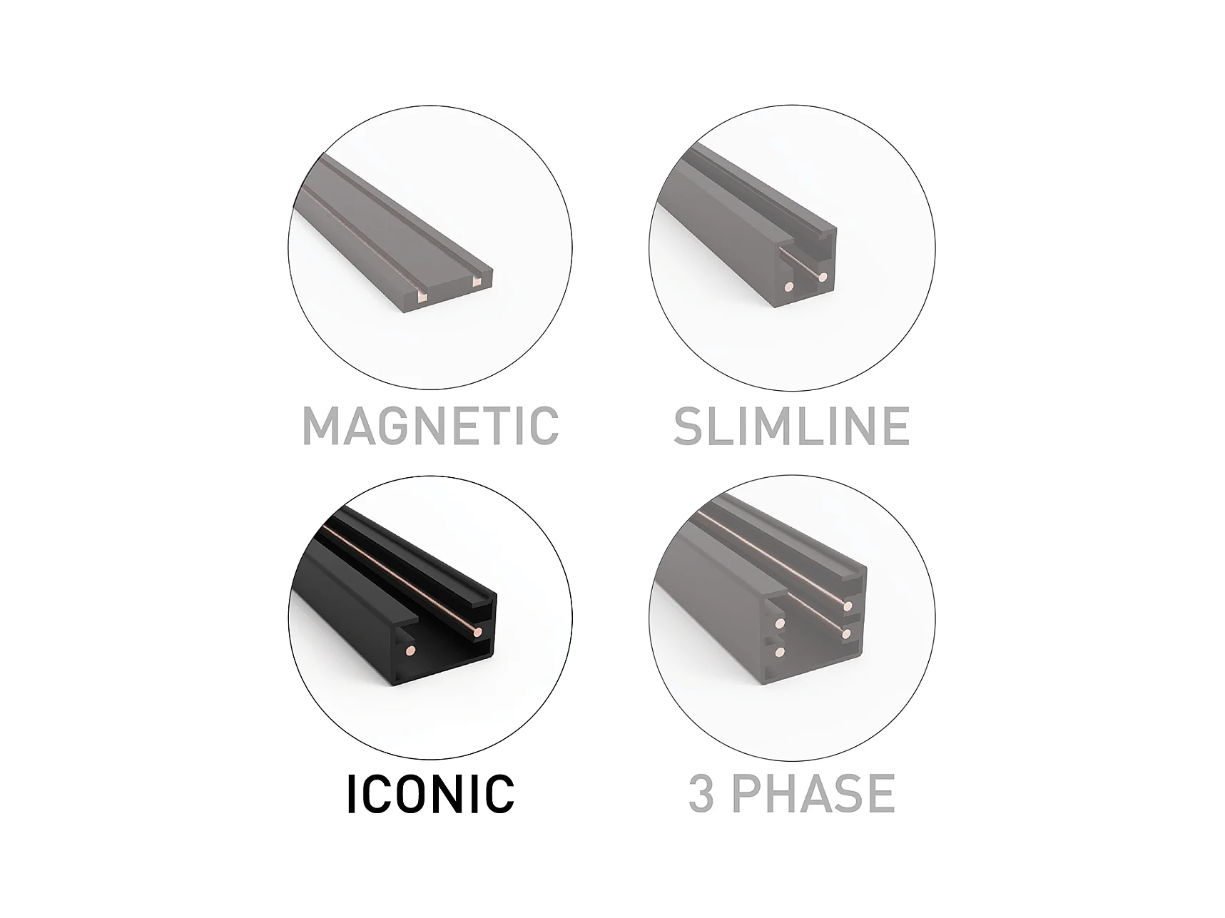 Système sur rail moderne blanc monophasé avec 5 spots - Iconic Jeana
