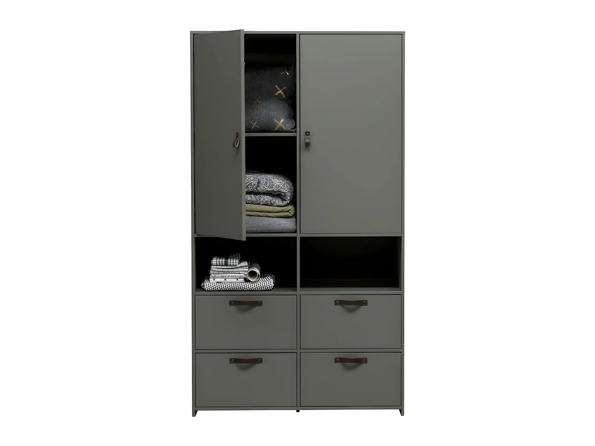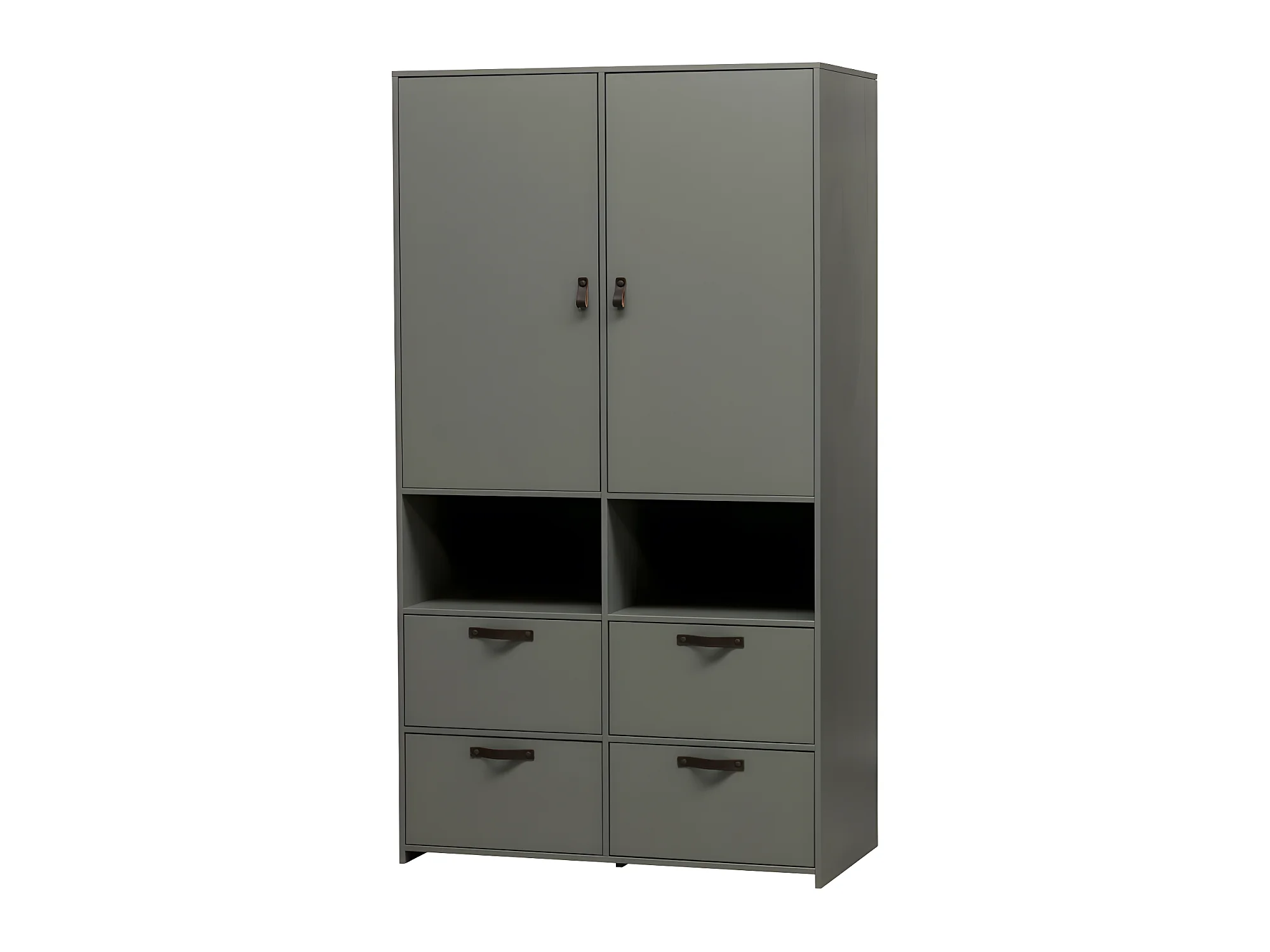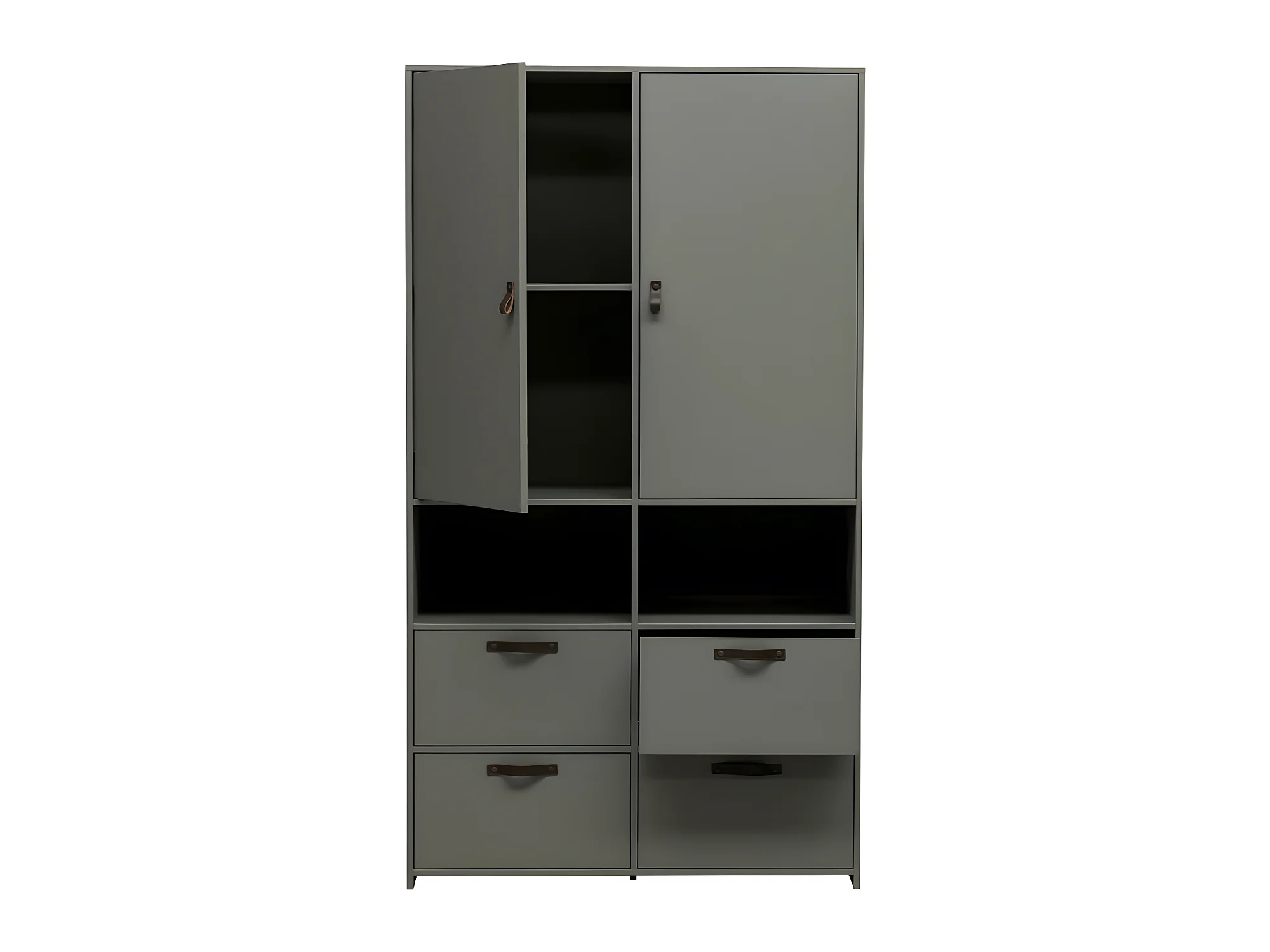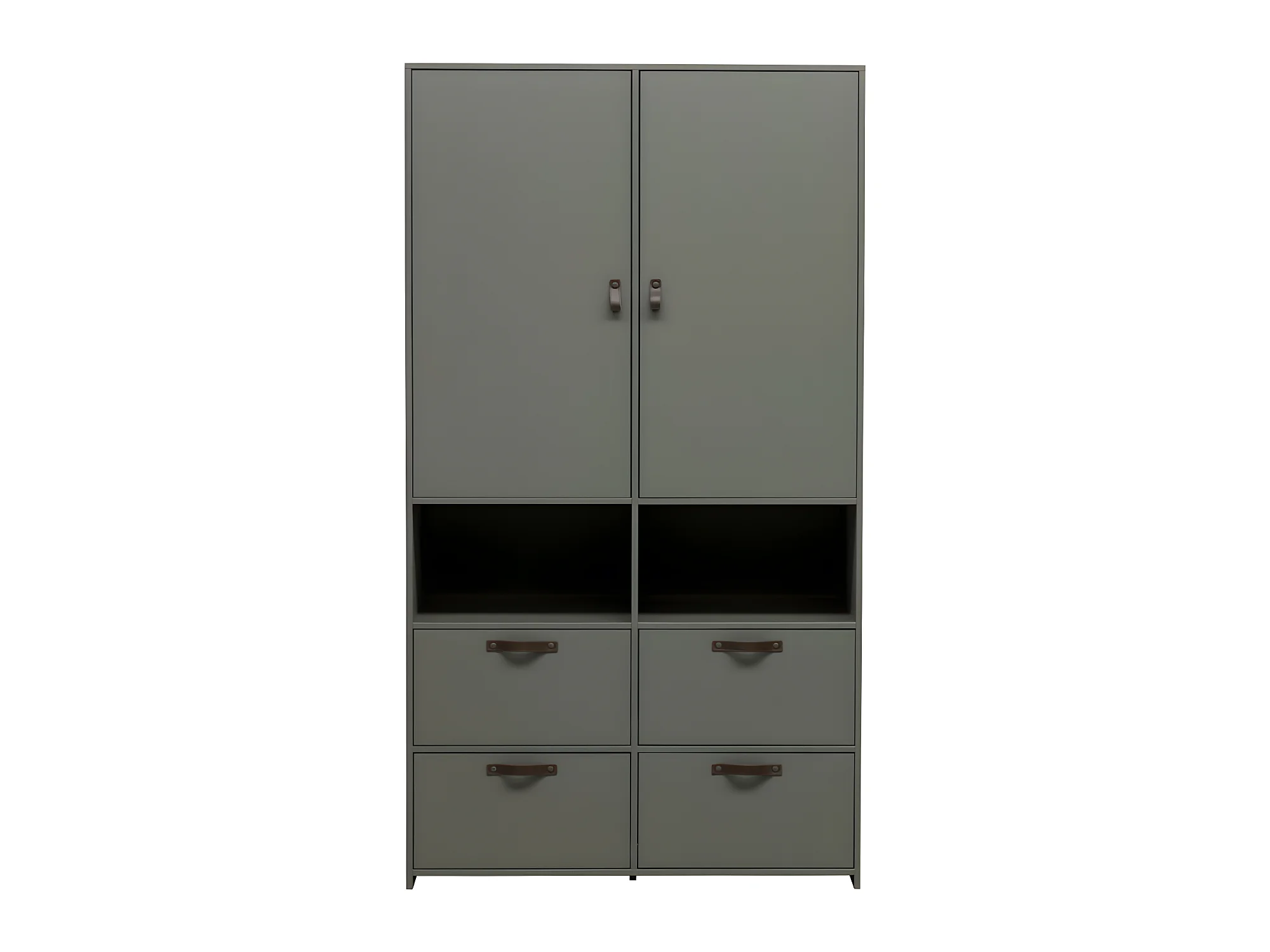 Stage - Armoire 2 portes 4 tiroirs en bois - Vert kaki
