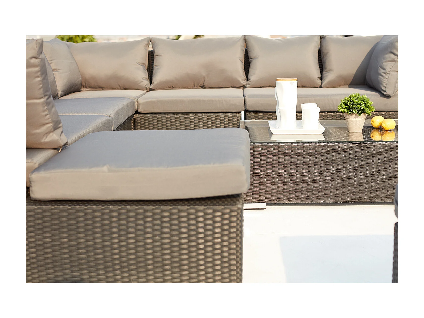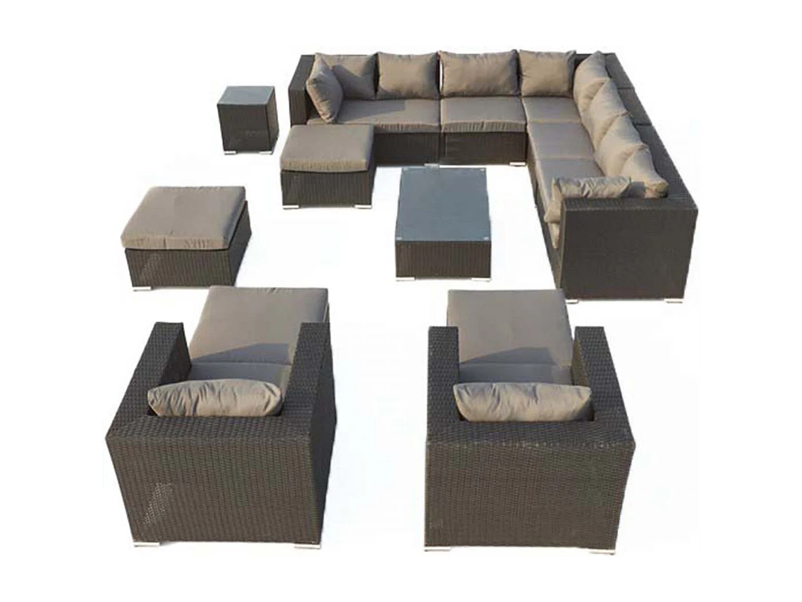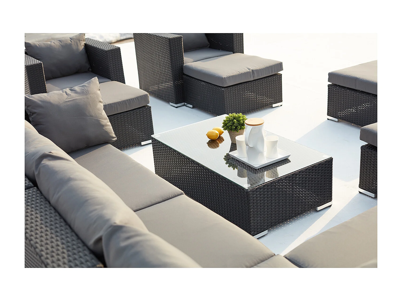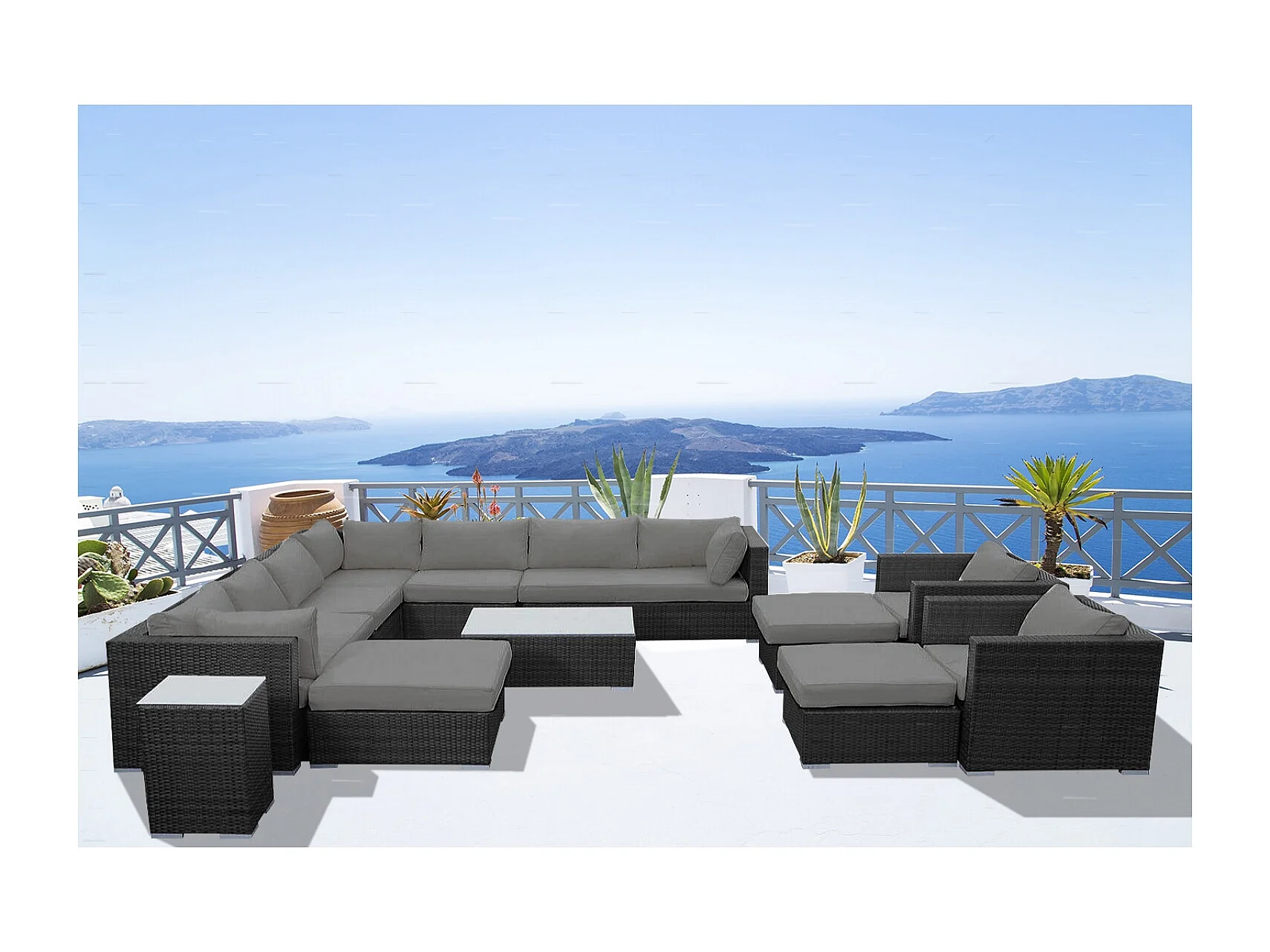 Salon de jardin modulable 13-14 places en résine tressée noir-gris STALLA