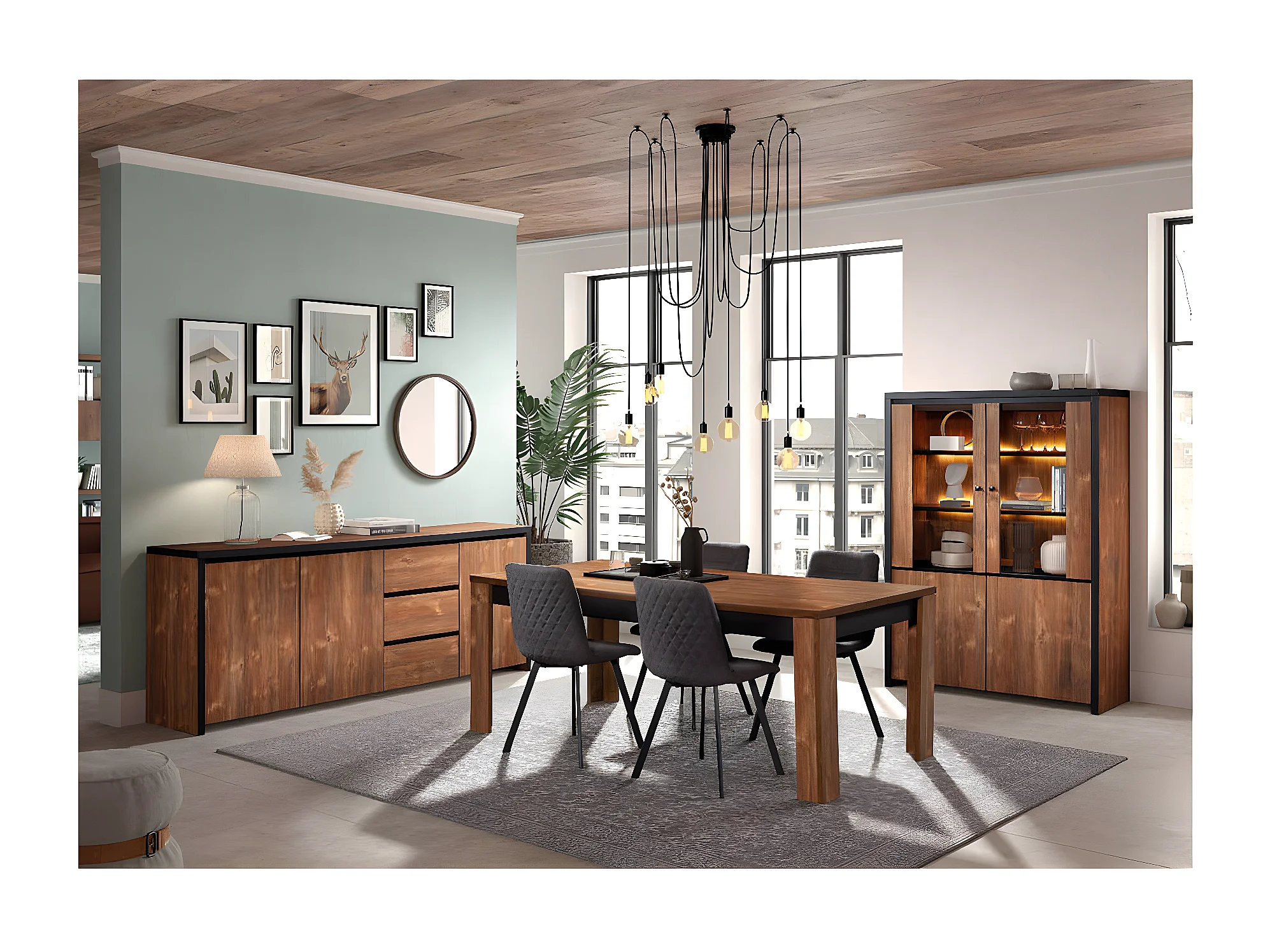 STALONE - Buffet 3 Portes 3 Tiroirs Effet Bois Manguier Foncé et Noir