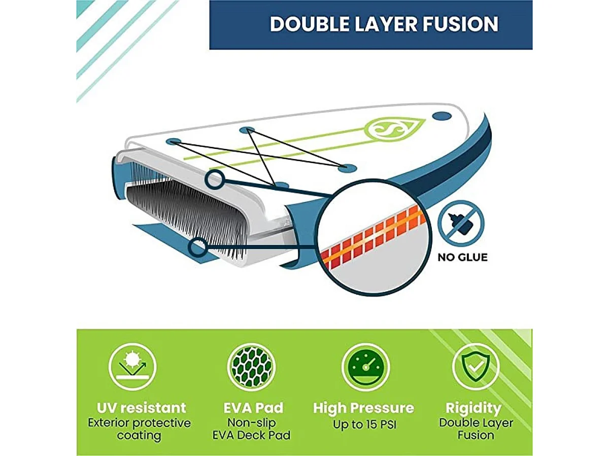 Stand Up Paddle Gonflable Sun Cruise 10'2 - 310x84x15cm (10"2'x33"x6") Skiffo - Dropstitch Double Couche Fusionné Pack complet