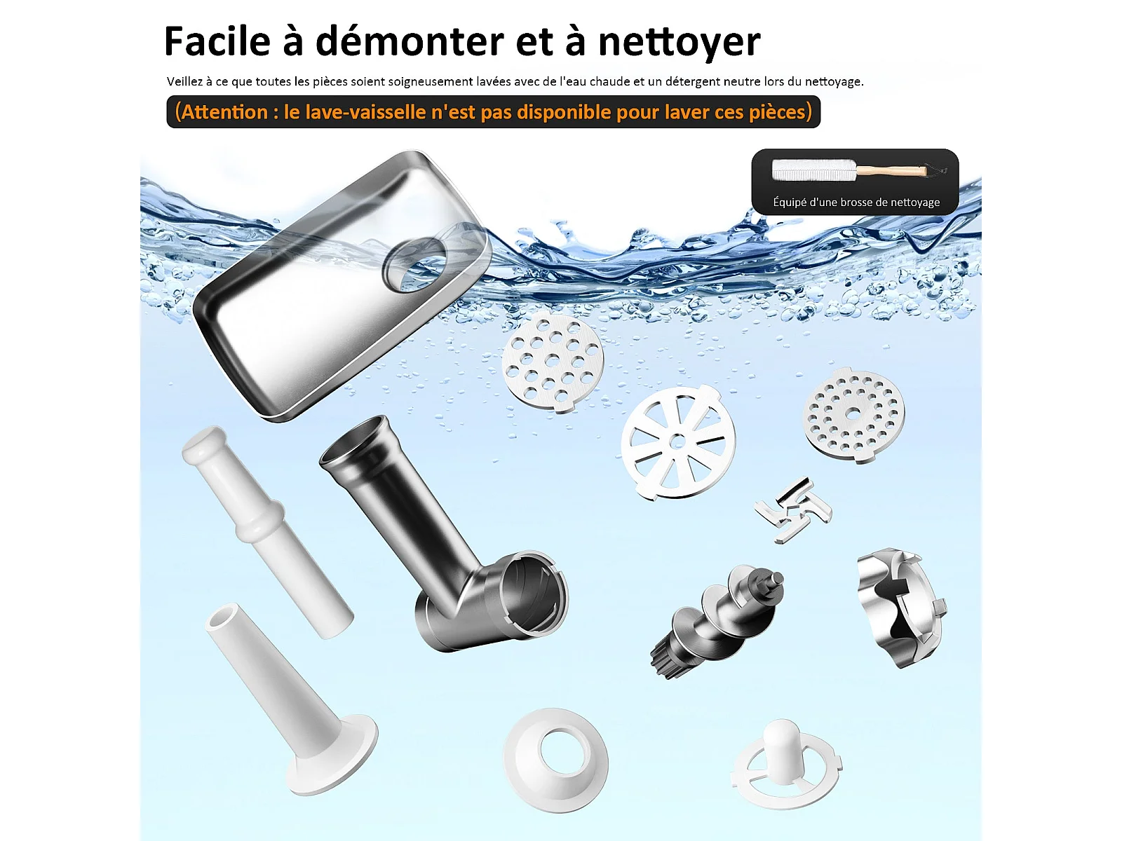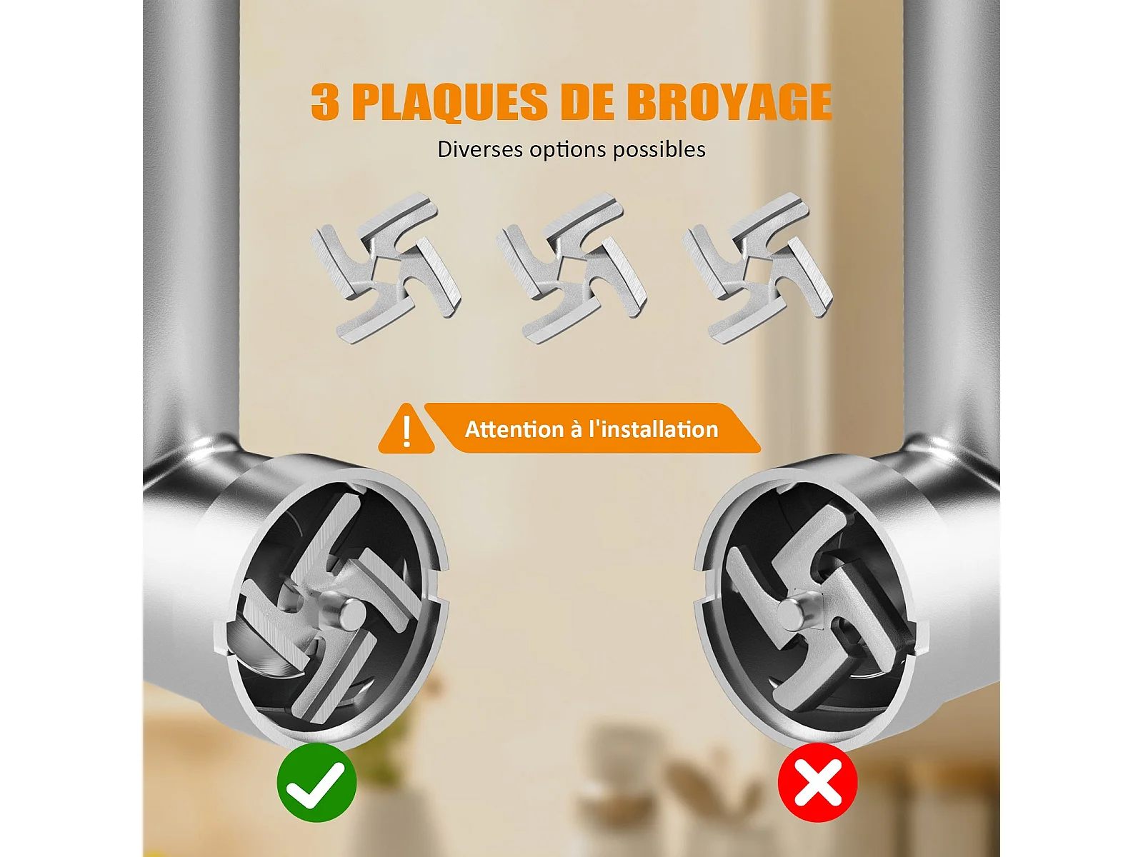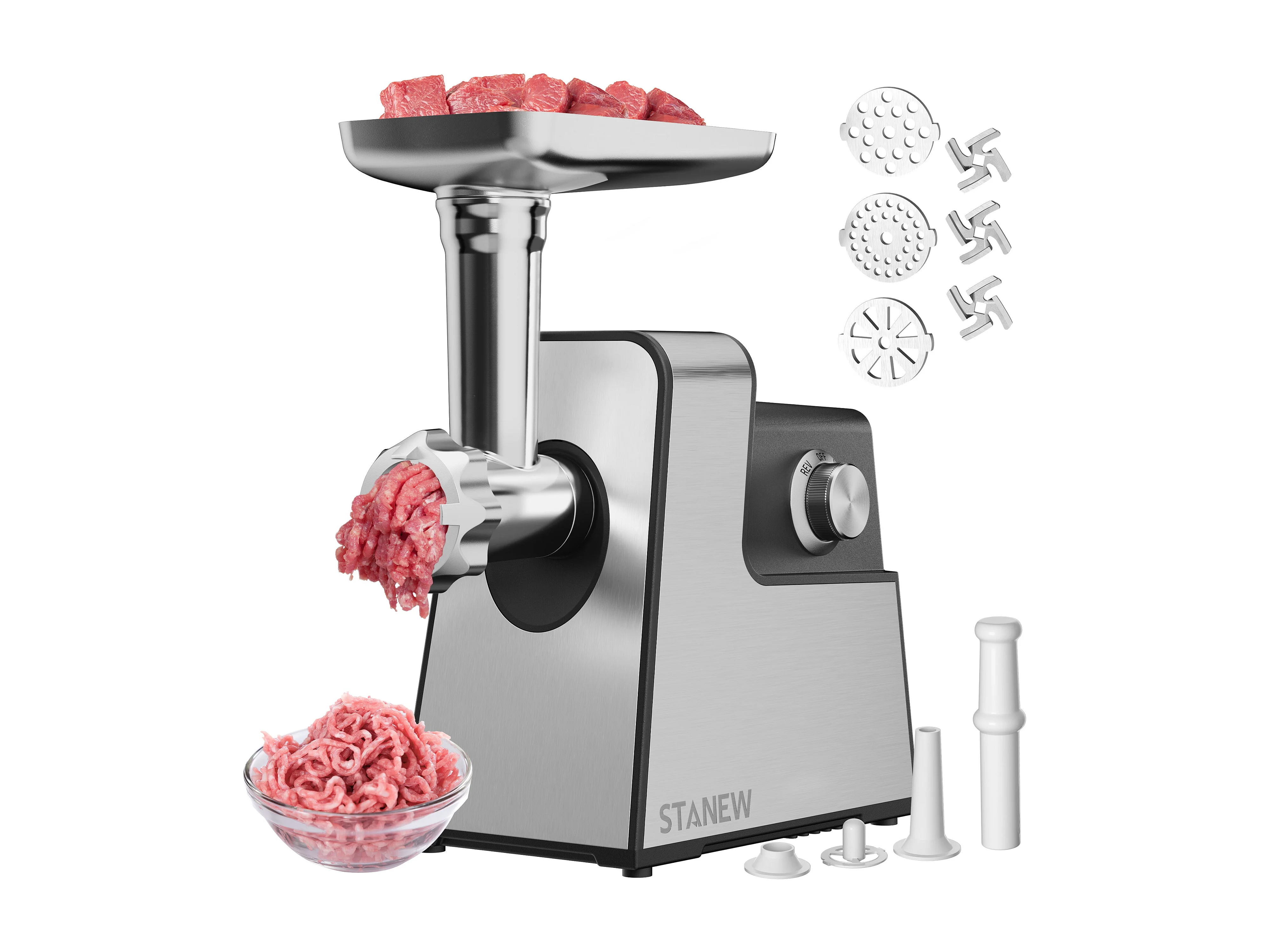 Hachoir à viande électrique, 4 en 1, avec 3 plaques de broyage en acier inoxydable (4 mm, 8 mm, ventilateur) et 3 lames, 3500 Watt