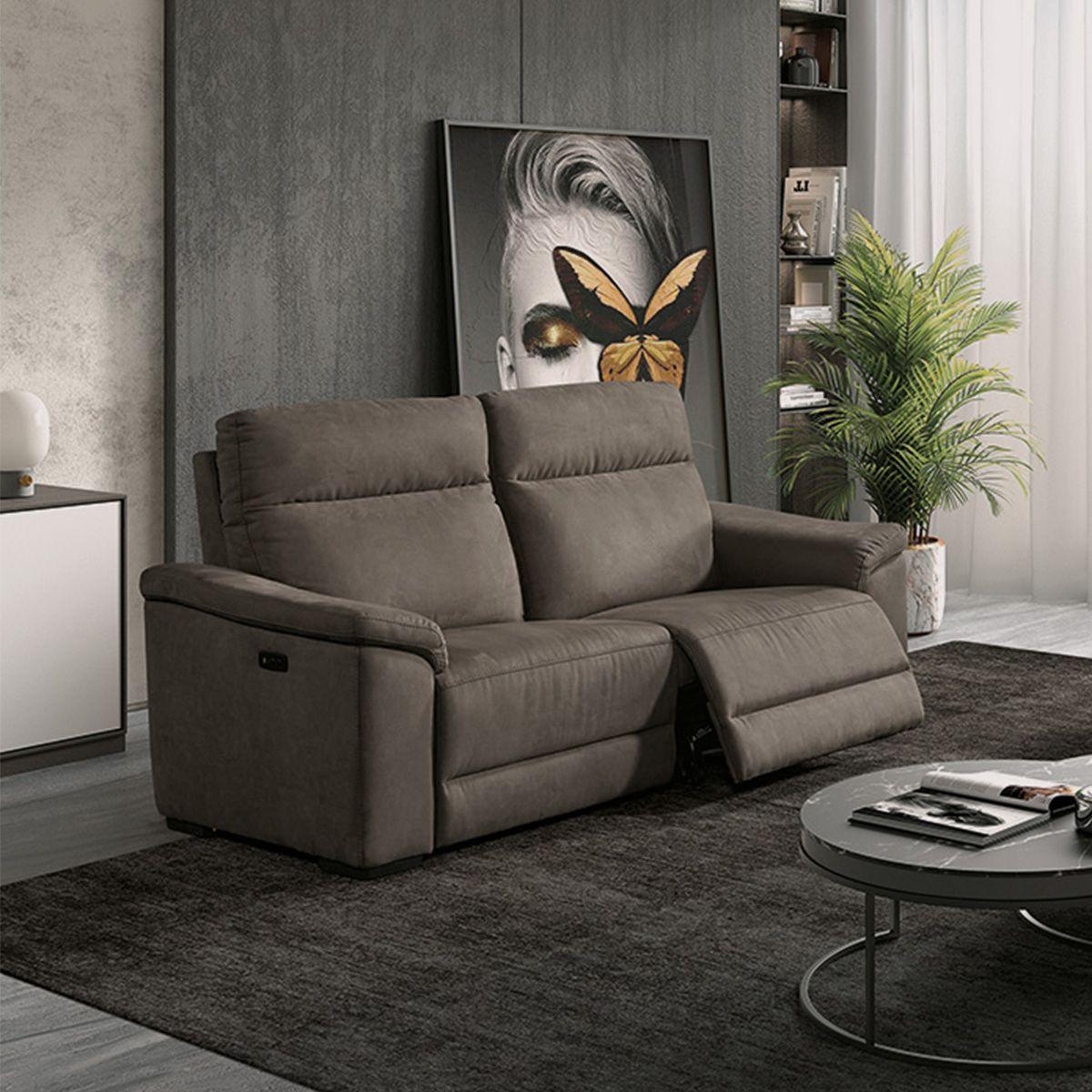 STANLEY - Canapé Relax Electrique 3 Places Tissu Peau de Pêche Gris Foncé