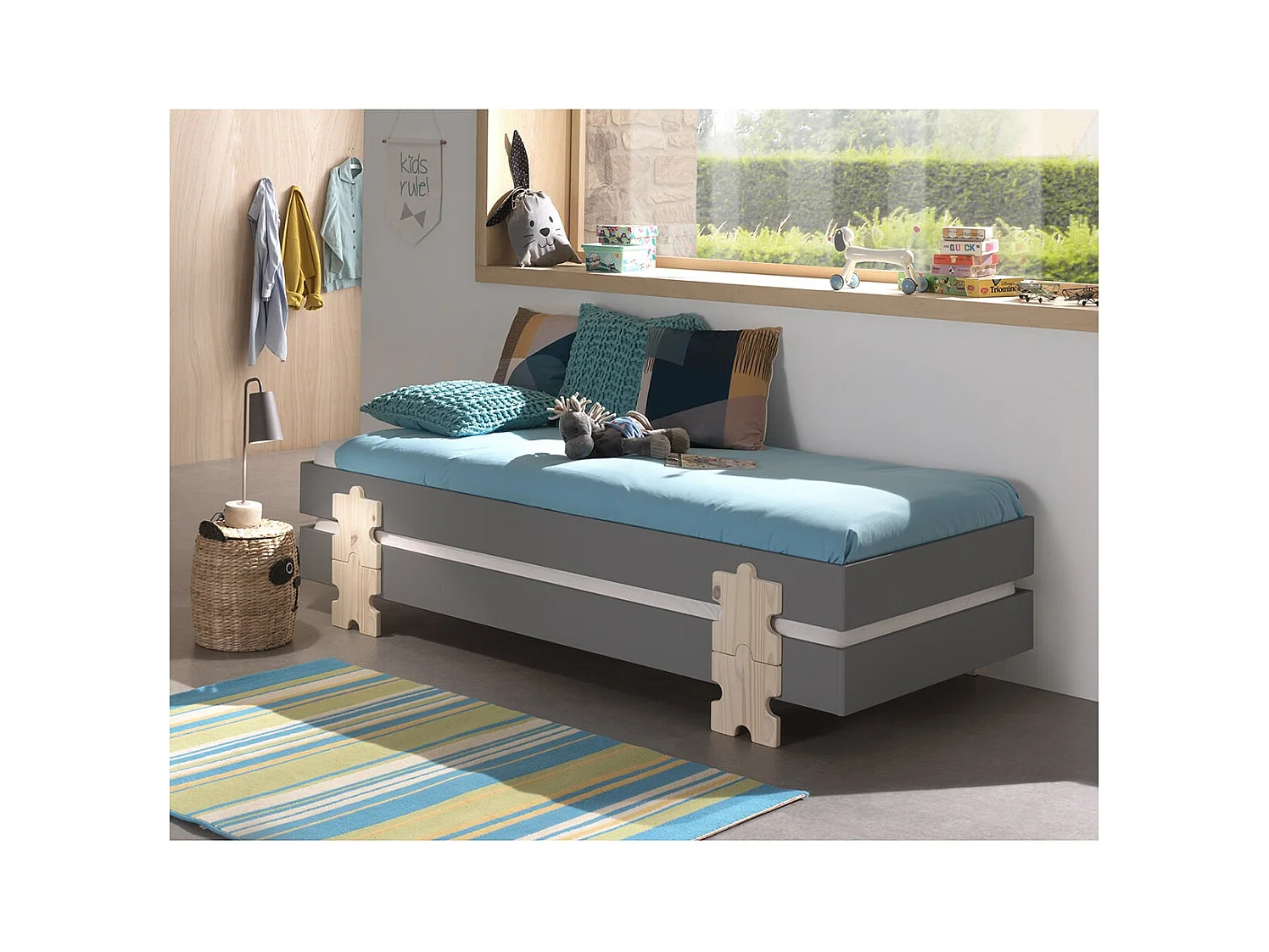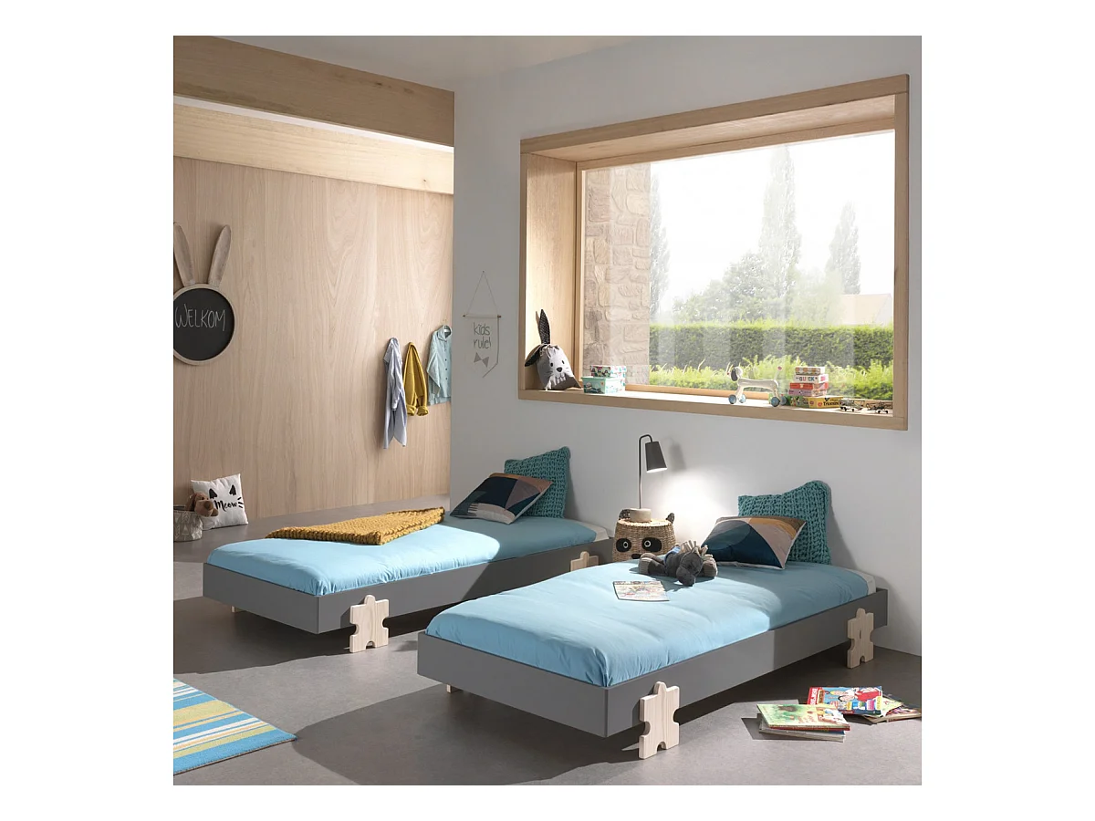 STAPEL - Lot de 2 Lits Empilables 90x200cm Gris Puzzle