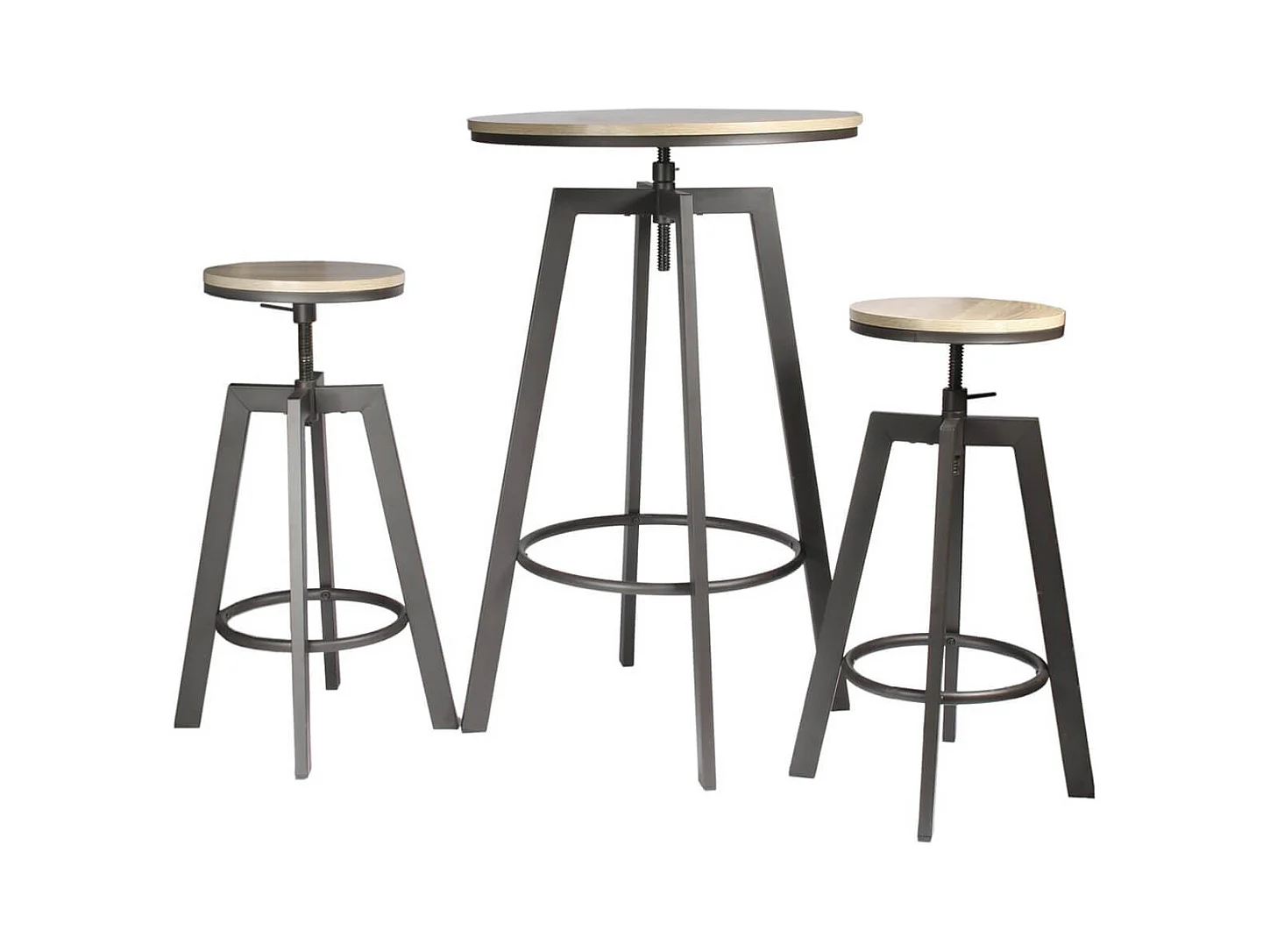 STARK - Ensemble Table Mange-Debout et 2 Tabourets Réglables