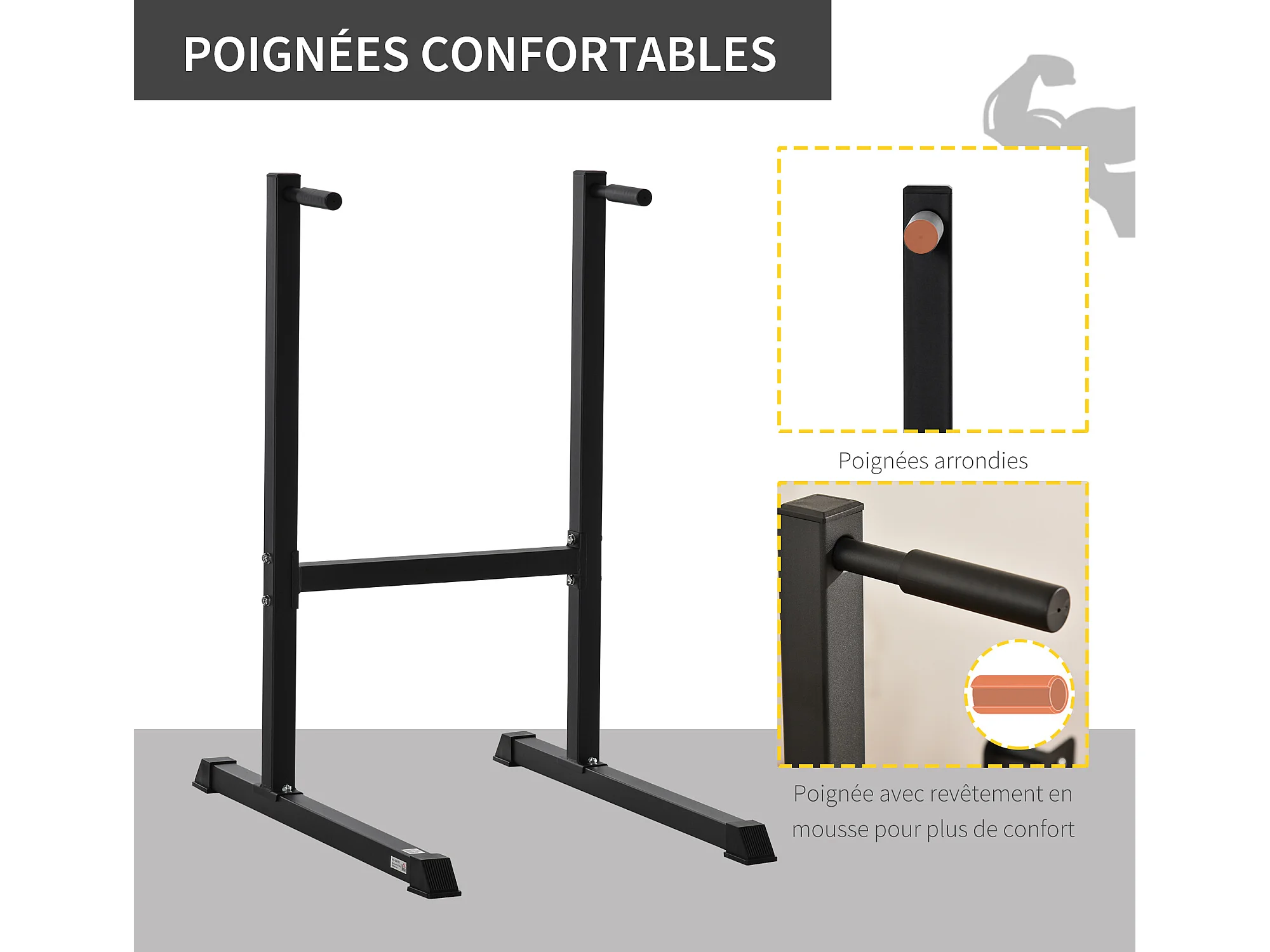 Station à dips musculation fitness poignées ergonomiques et pieds antidérapants acier 104 x 70,5 x 122 cm noir