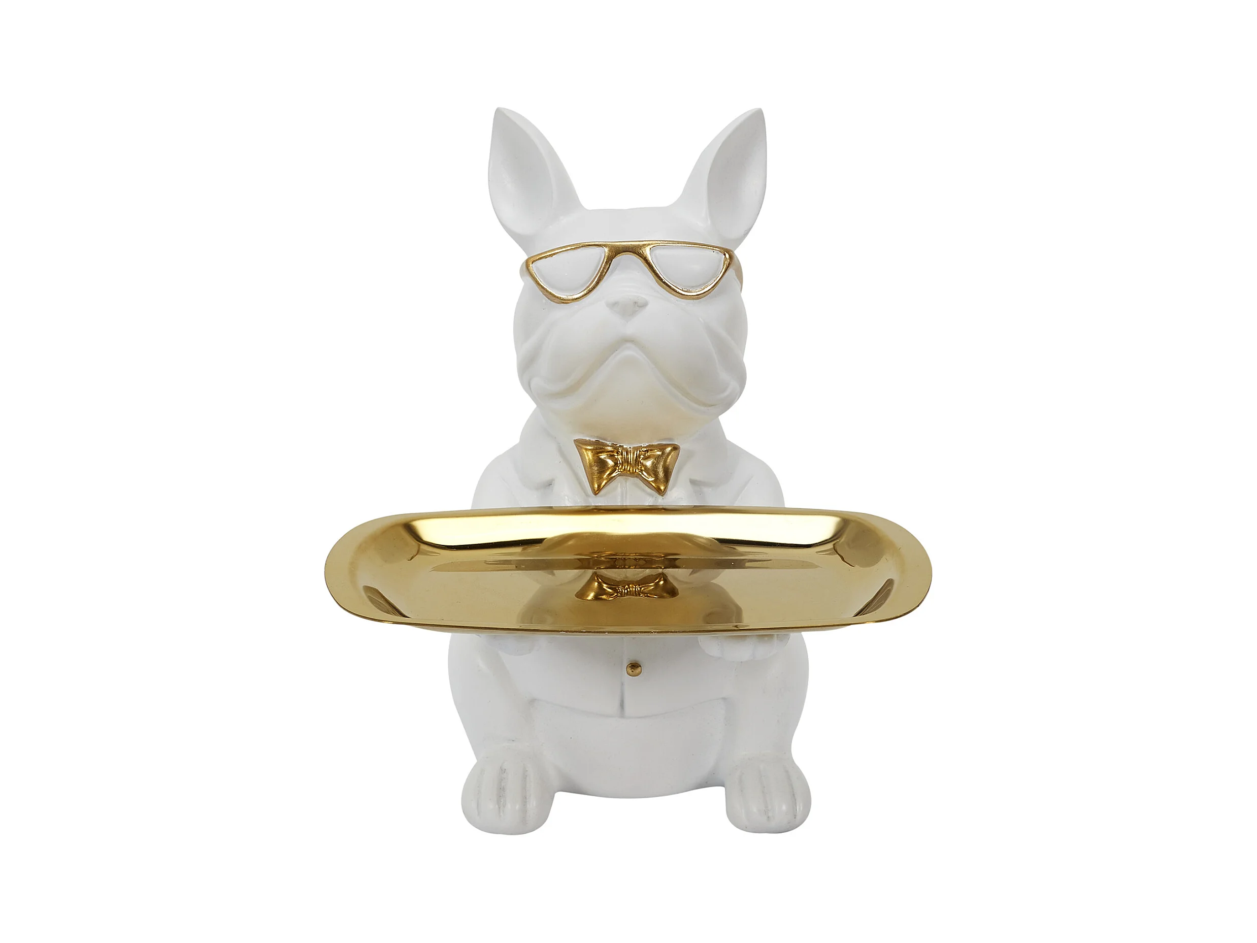 Statue Bulldog Vide Poche 23cm Blanc, Or