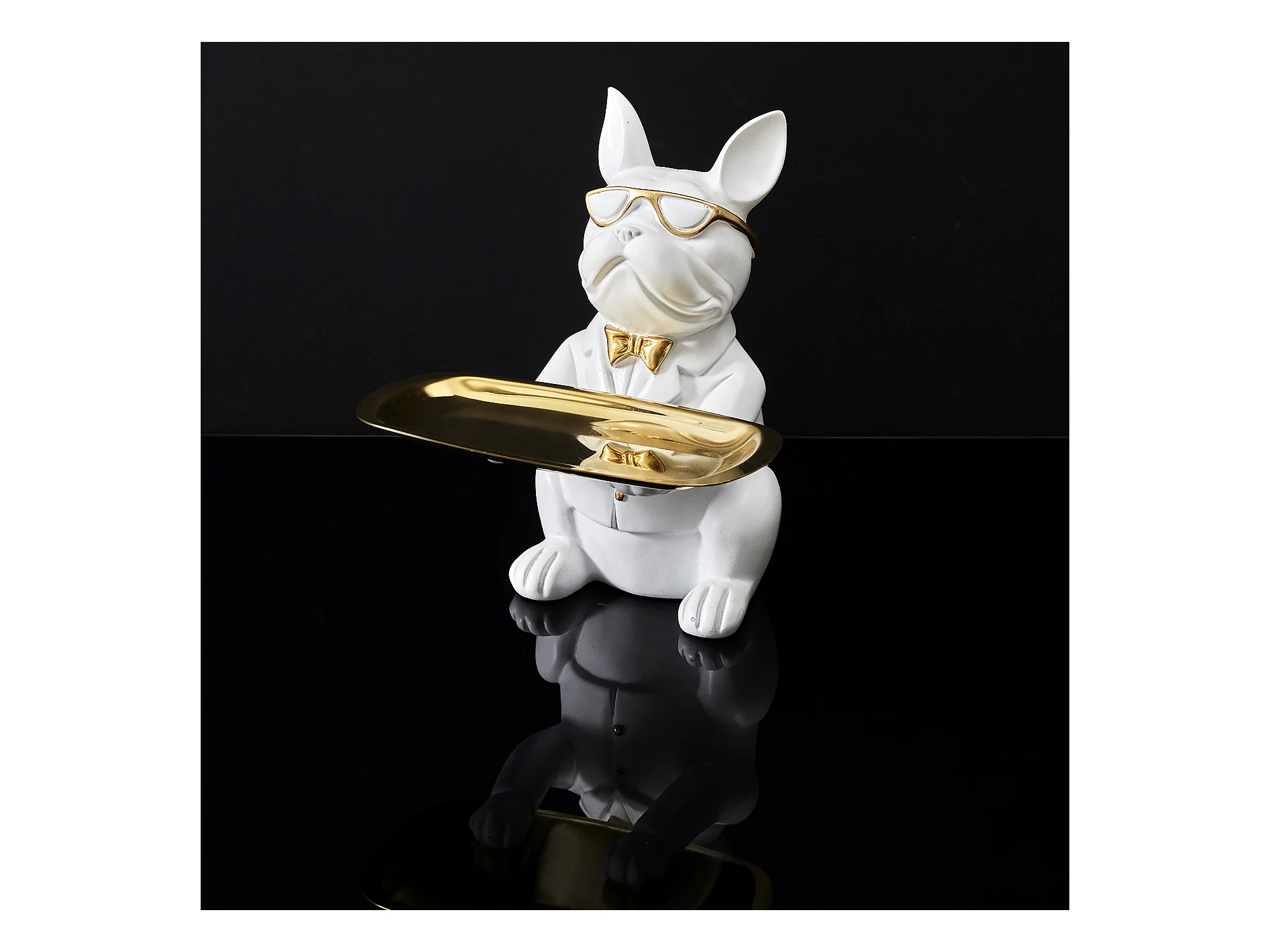 Sculpture Chien A Lunettes Blanc Vide Poche Blanc, Or
