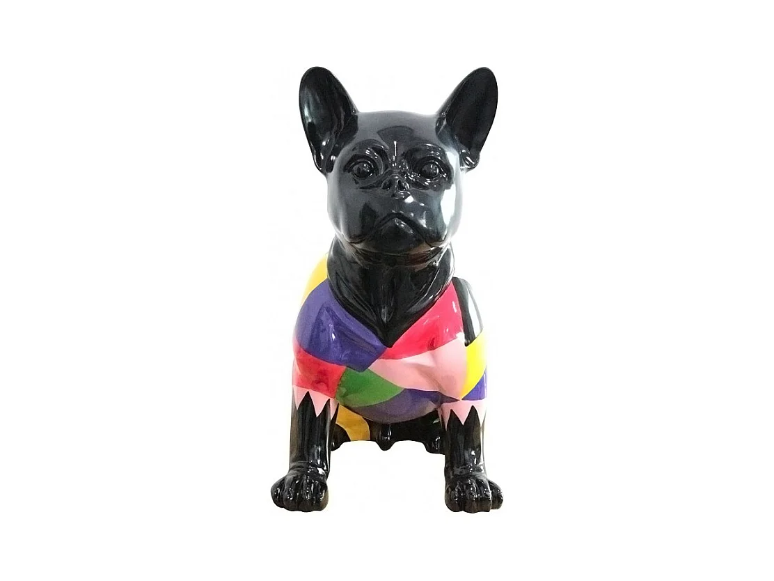 Statue bulldog français noir peinture multicolore en résine - MARTIN